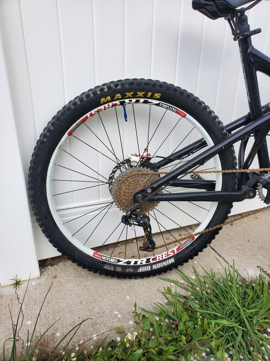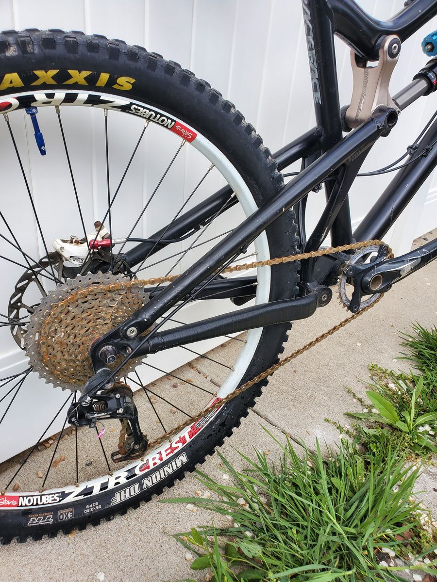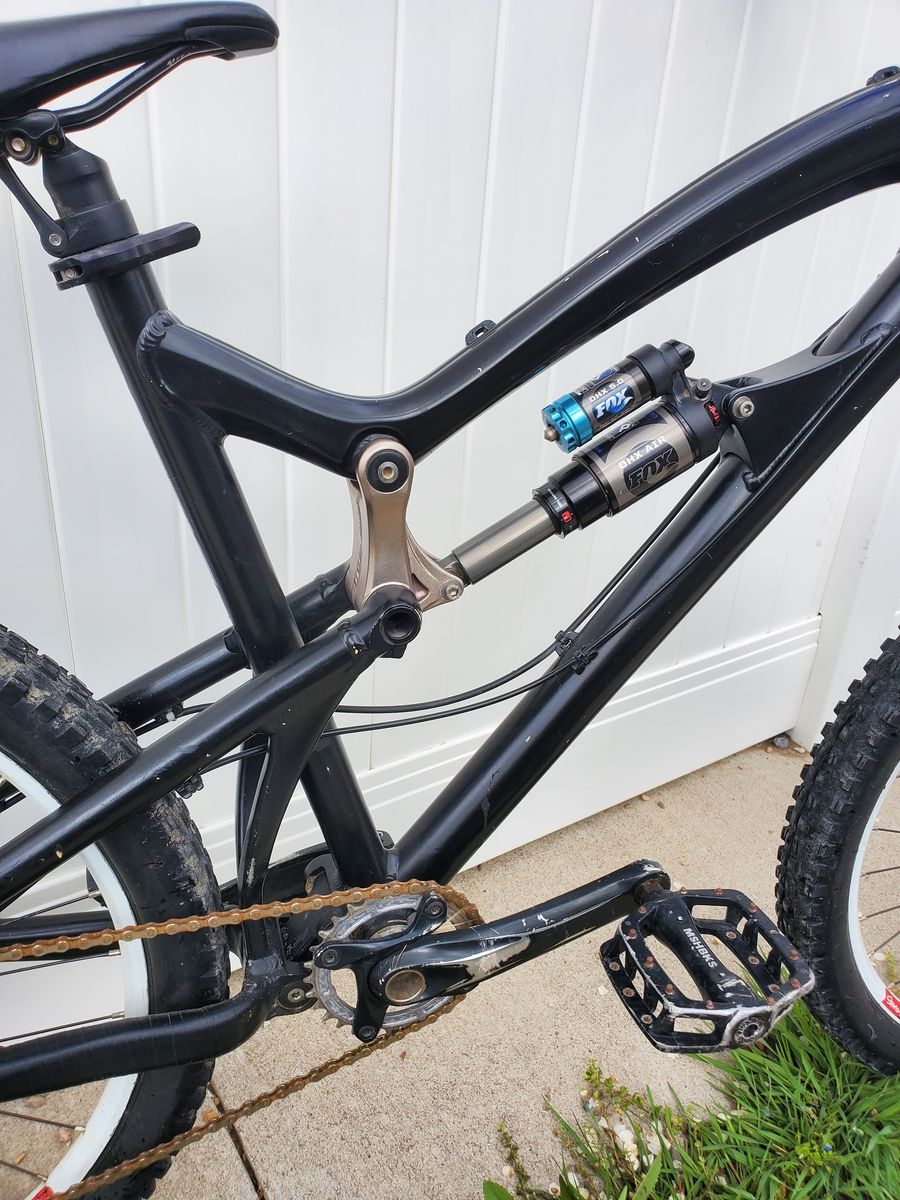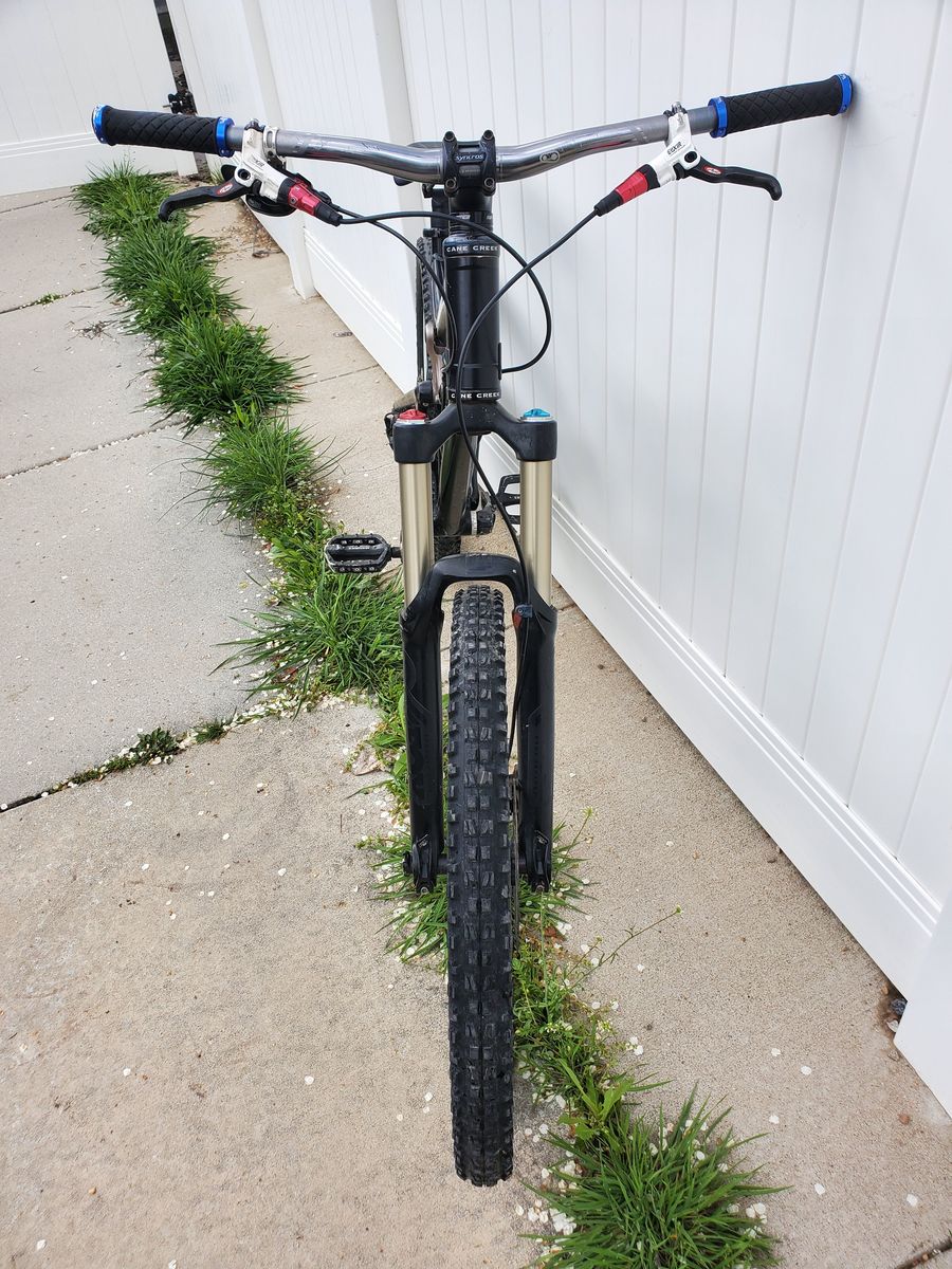 PayPalGreat bike. Son outgrew. Aluminum frame. Size Large. Fox 36 fork and Fox DHX Air shock. Stan's ZTR Crest 26" wheels. Avid hydraulic disc brakes. 1x10 drivetrain. Tubeless tires (fresh Stan's sealant, but needs new rim tape).