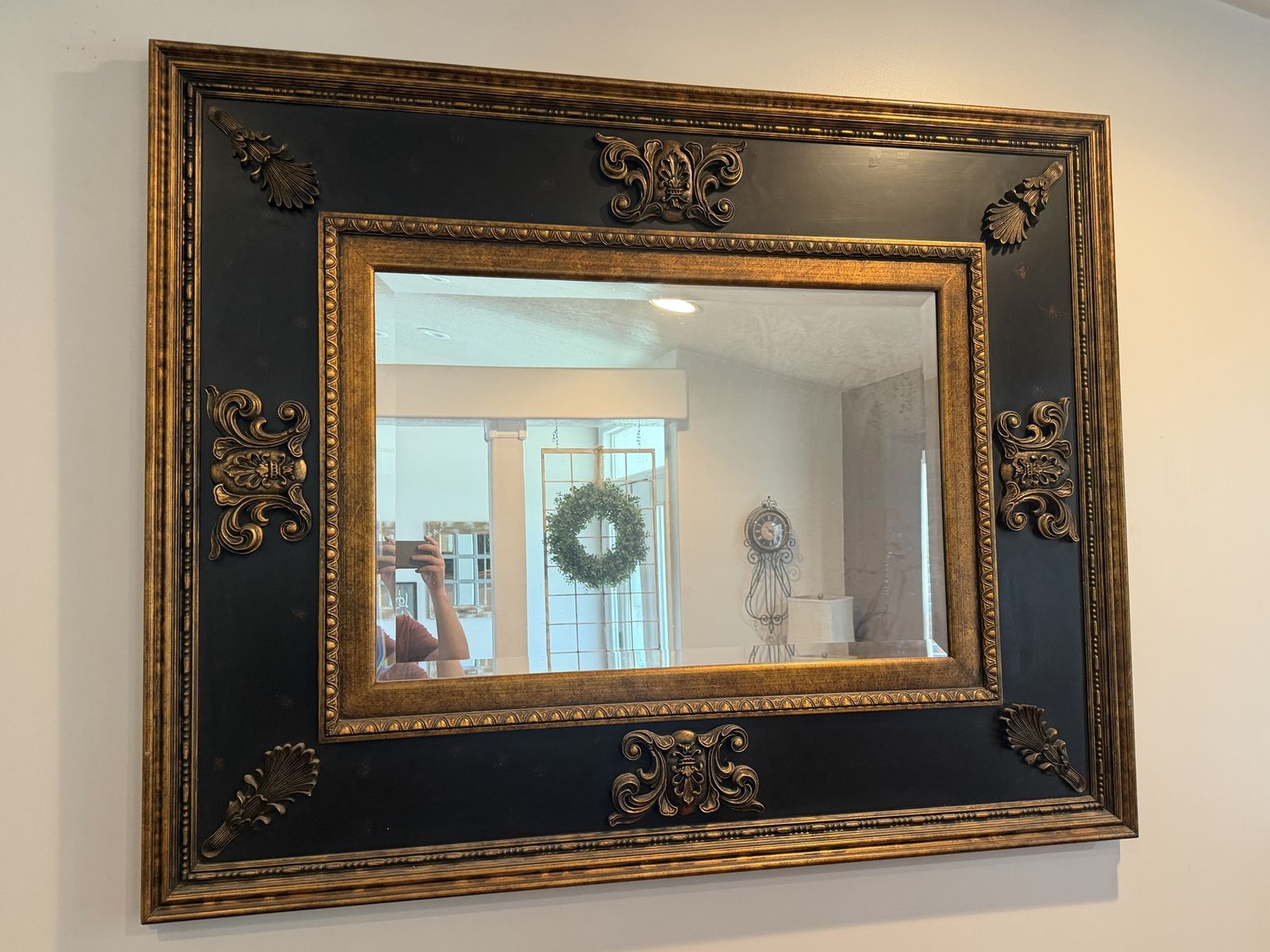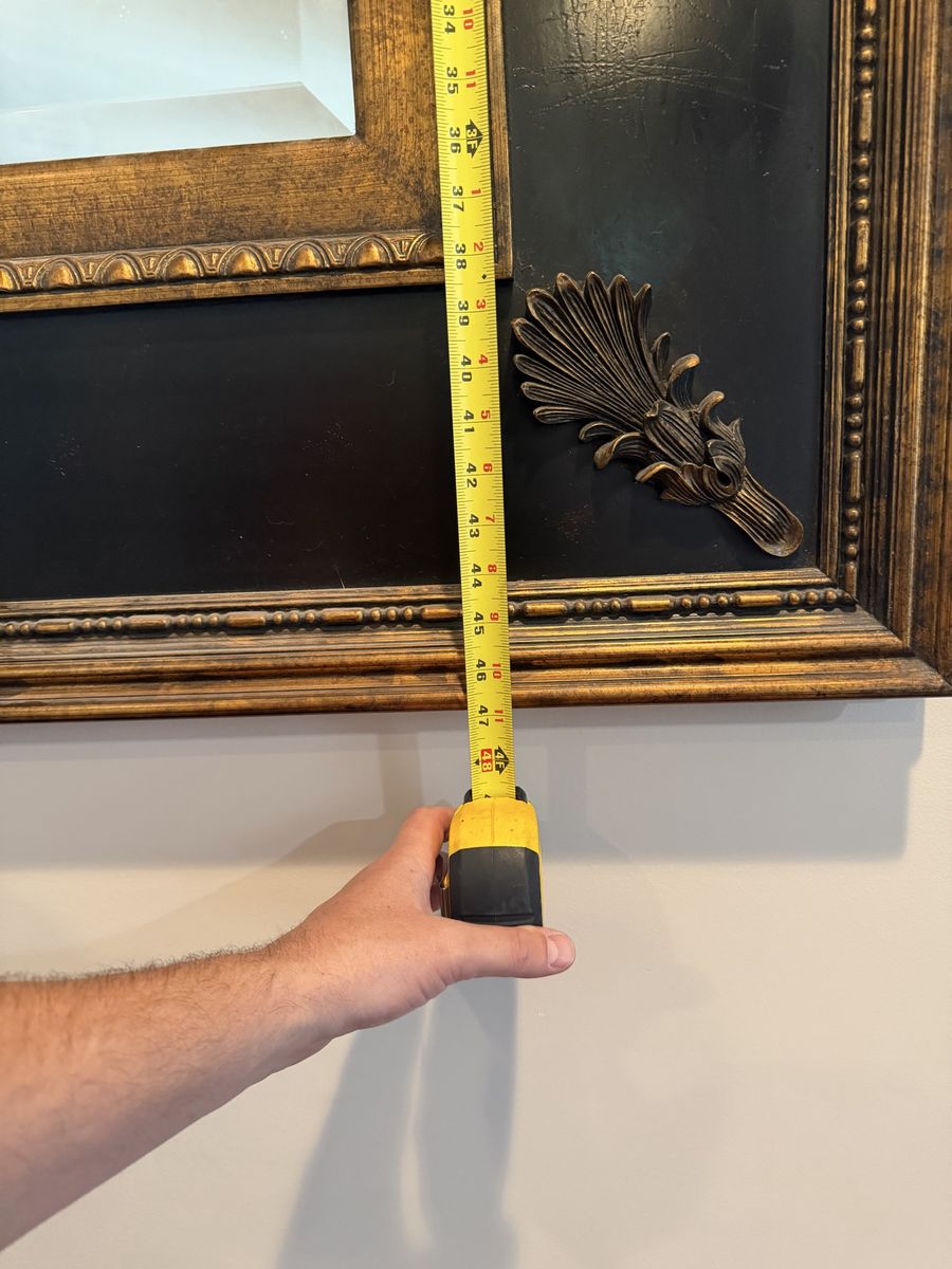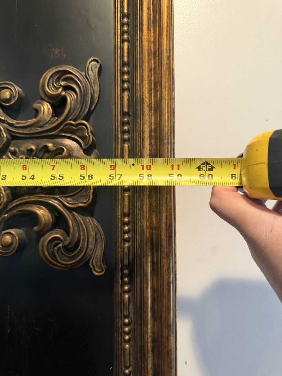 The full size of the mirror is basically 48”tall x60”wide I don’t know anything about it other than it’s very heavy and takes 2 people to hang it. We have had it for over 10 years and decided it’s time for a change.