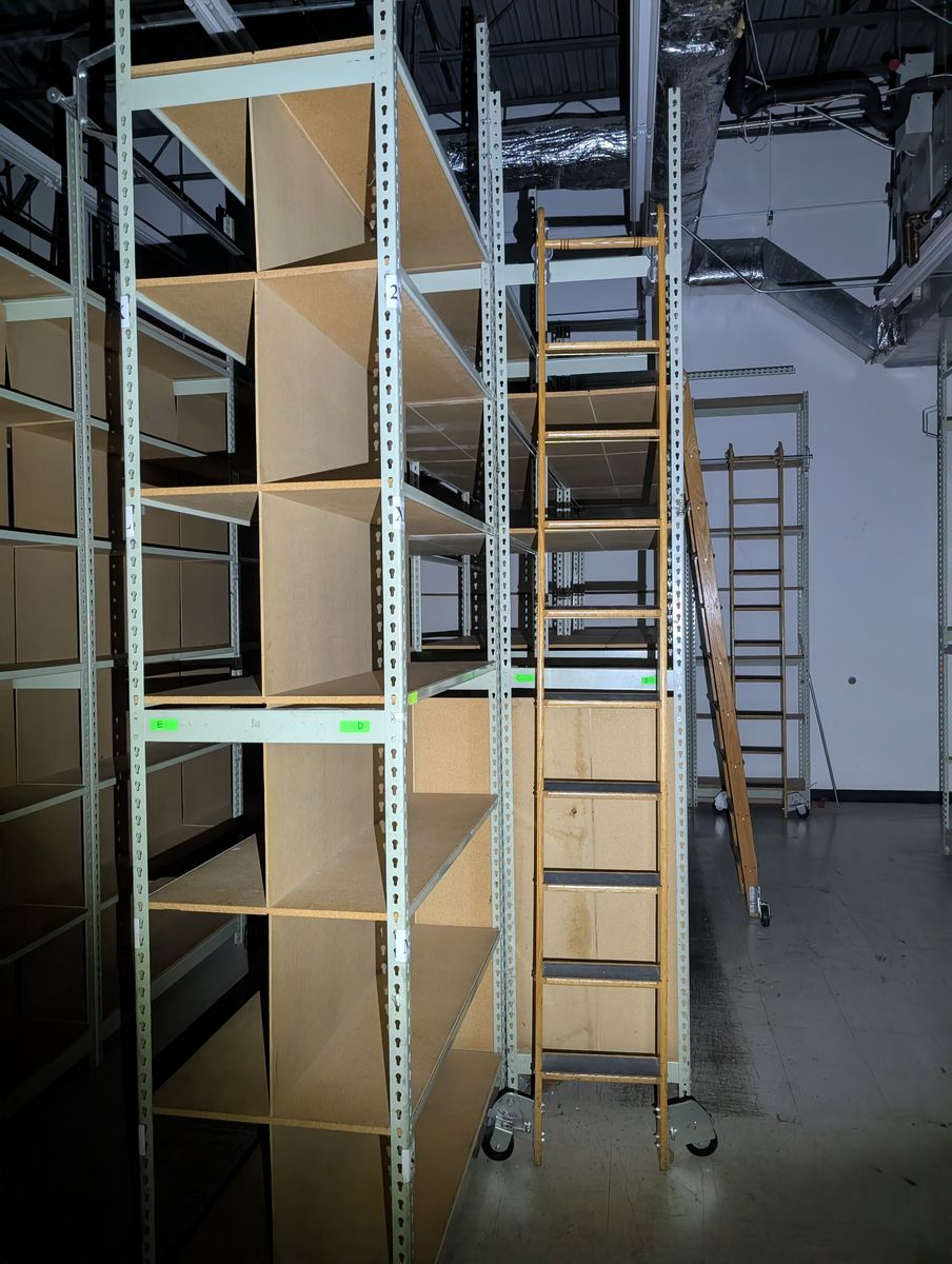 There is also a square one with same height but 24.5x24.5" length/width. Ladders included.