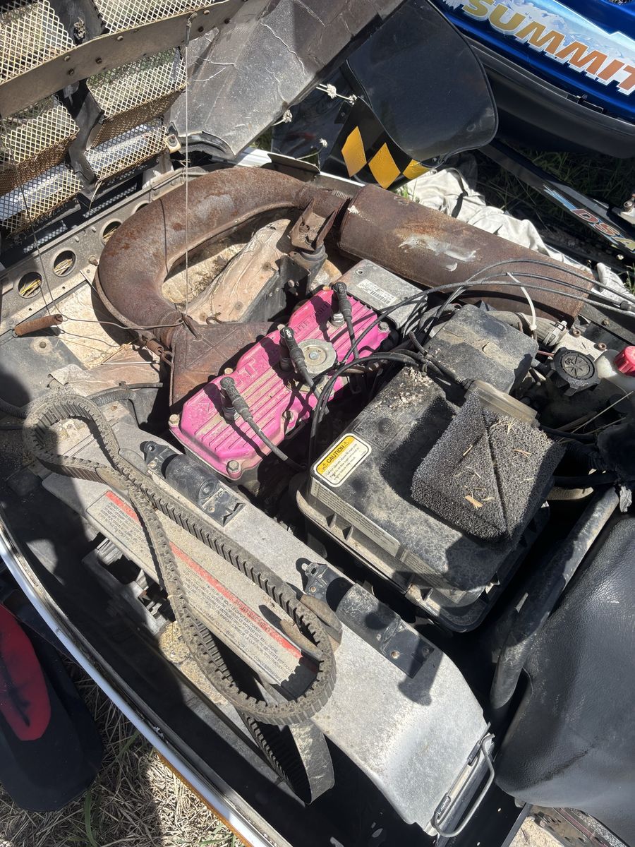 Great sled runs good once started. Will need carb boots hence the hard starting. Track is good I don’t know of any missing lugs. Seat is repairable. 400 obo