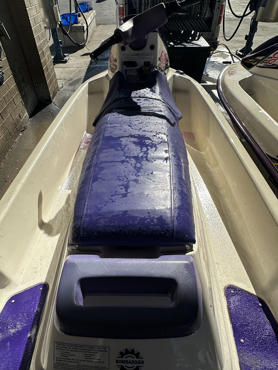 Both have the reliable 787cc Rotax 2-stroke engines (dual carb). These are great, stable skis that run around 50–55 MPH and seat 2–3 people.