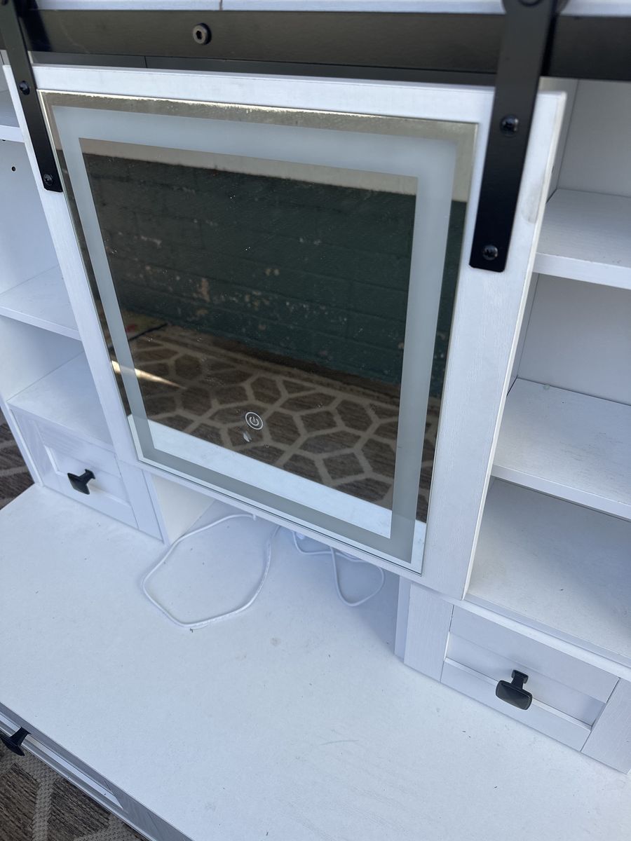 VenmoIt’s a vanity top - I accident broke the legs off - so it has to sit on an existing table. It has a light up mirror - quite nice still with two drawers and some shelves Or can take the parts to use to make furniture.