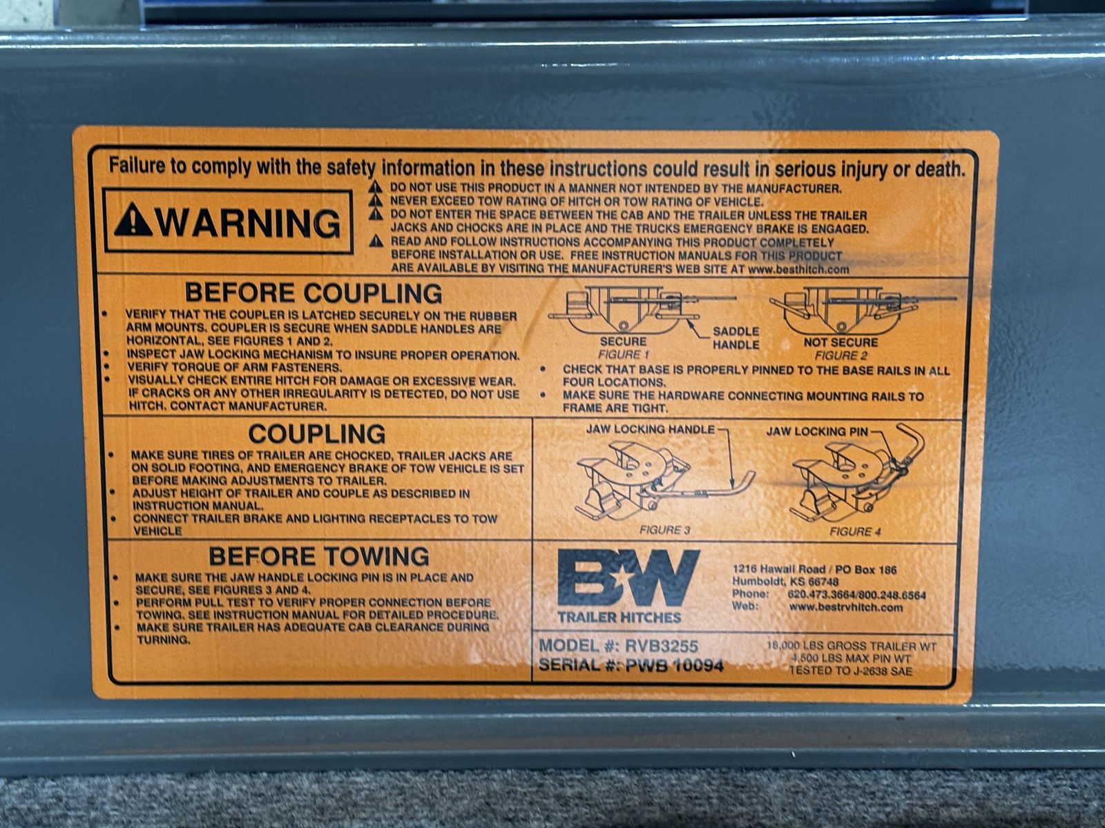 The Patriot 18K by BW 5th Wheel Hitch with Rails