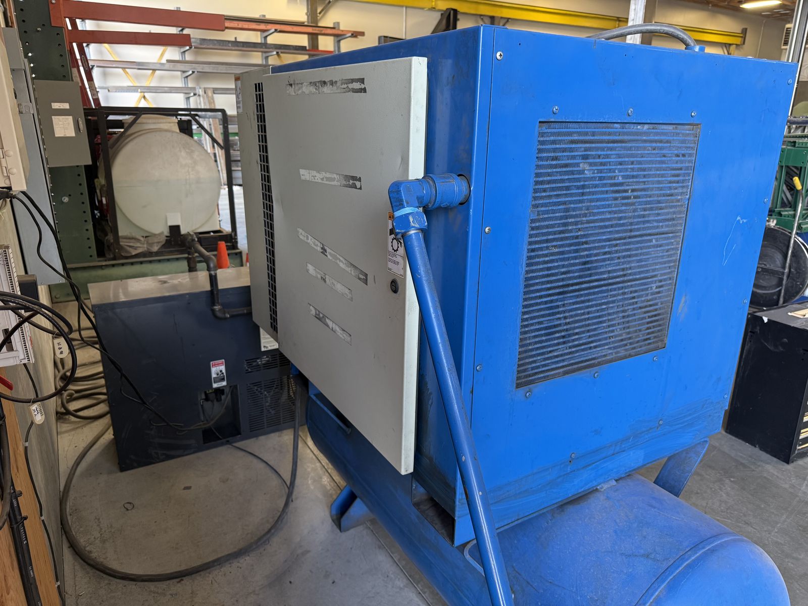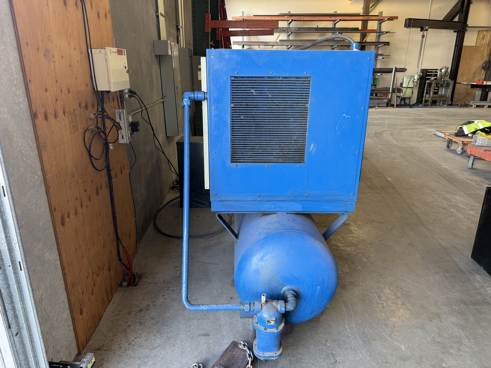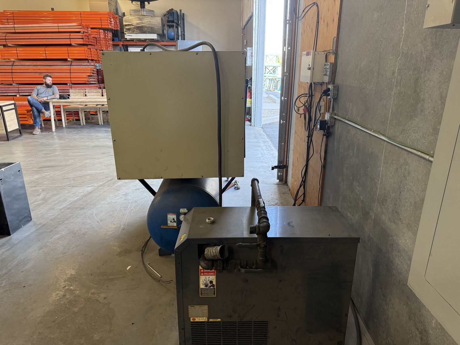 This is a solid commercial grade compressor setup ideal for shops, warehouses, or manufacturing use. Normal wear from use but nothing that affects performance.