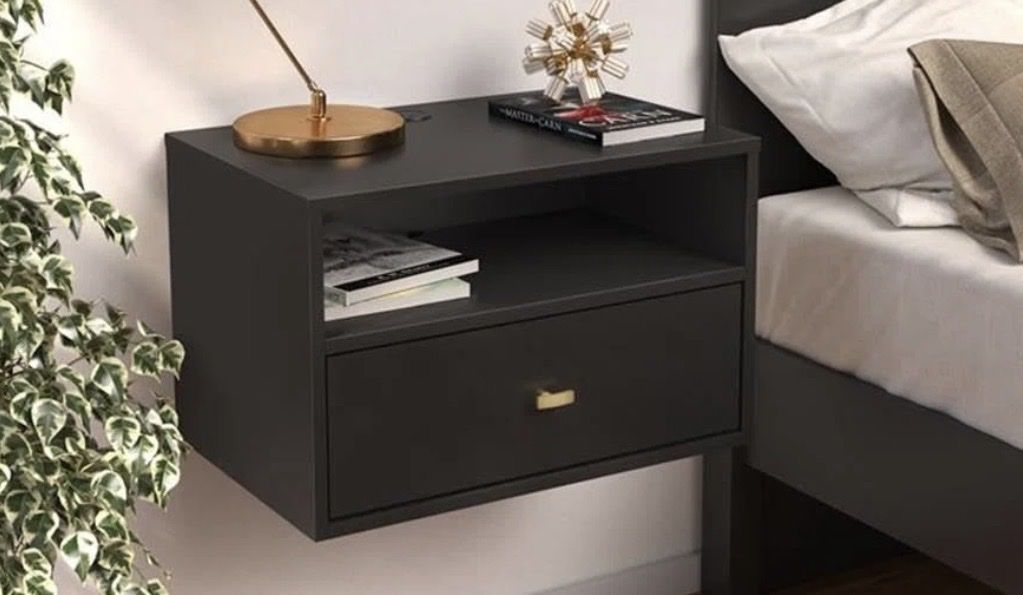 It’s a floating back nightstand. It’s new , always planning on hanging it but never got around to it and still sitting in the basement it was never hung as I’m not savy with placing things in the wall. So it’s a nice deal normally $133