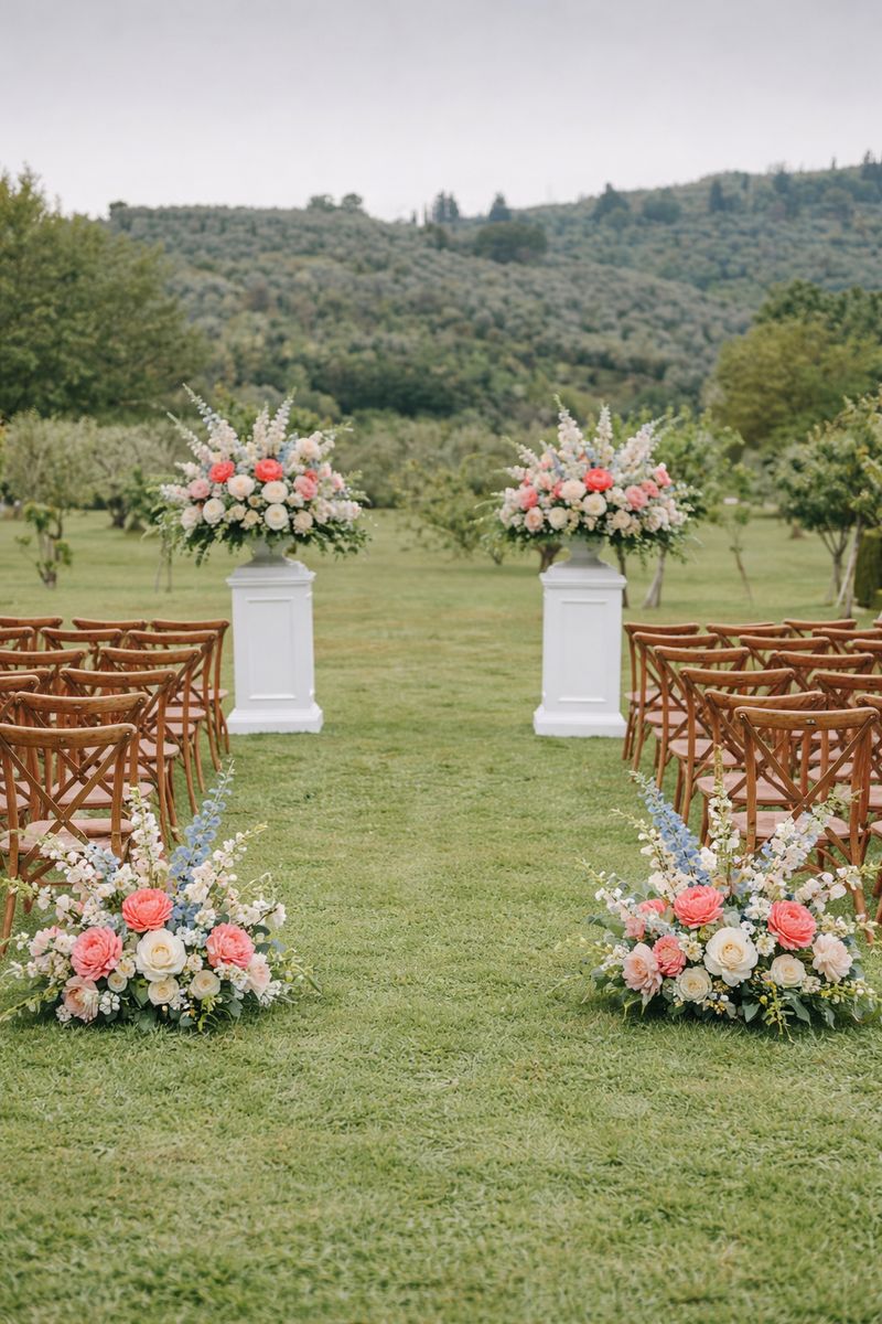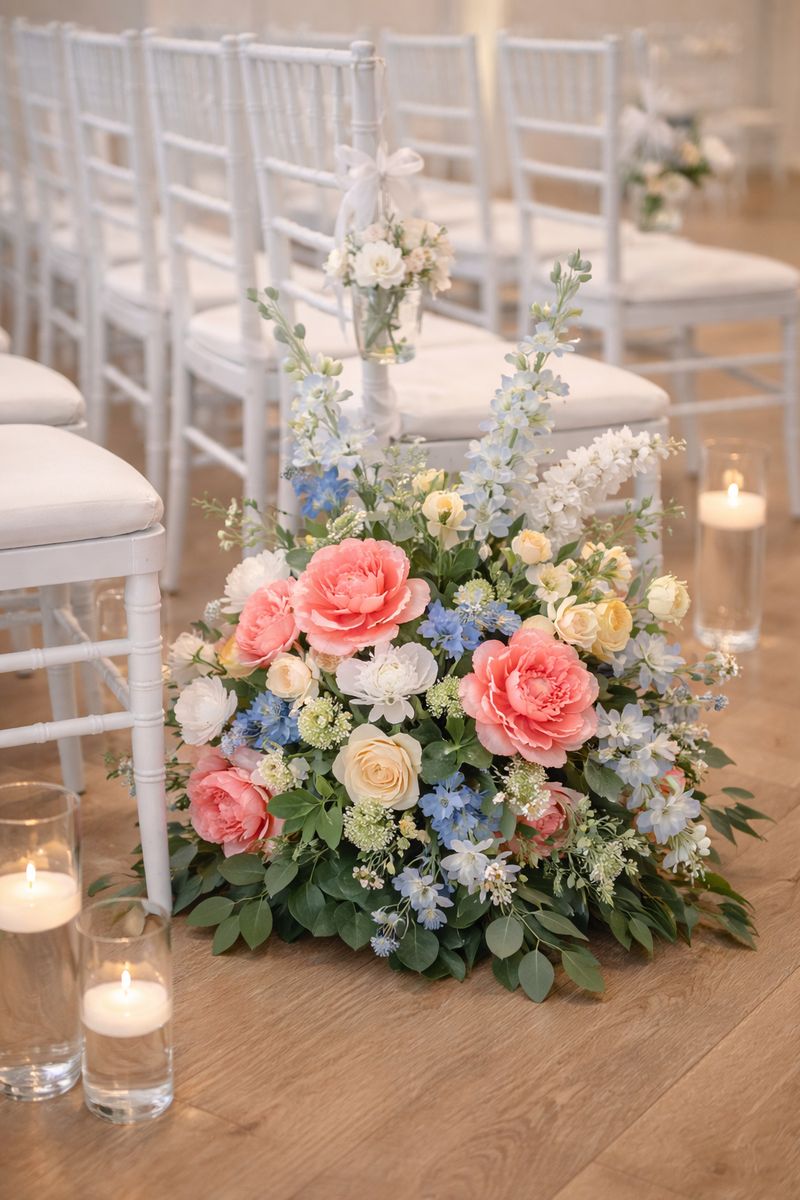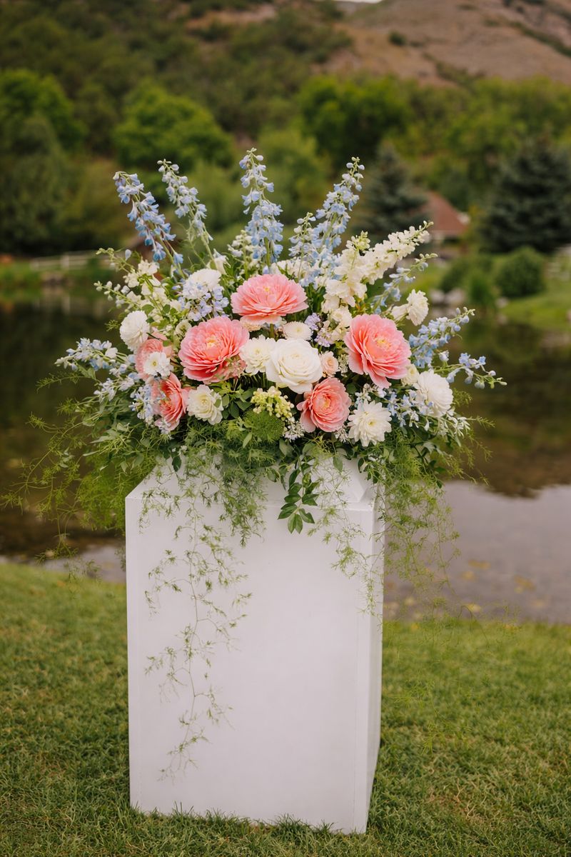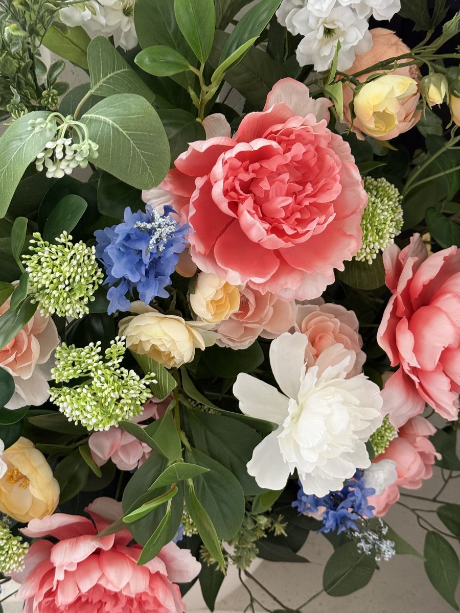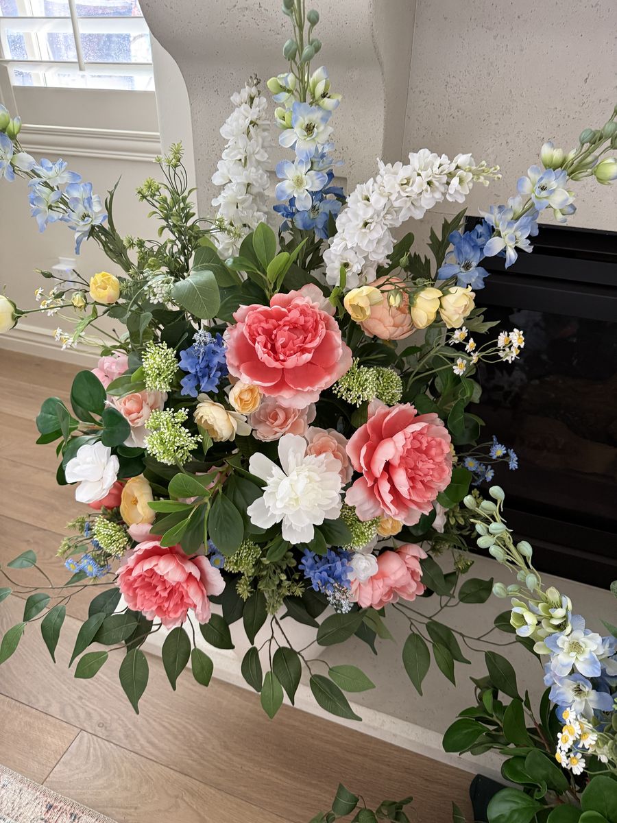 Venmo5 versatile floral meadow style arrangements FOR RENT. These arrangements can be used in a variety of ways for your event: aisle markers, sweethearts table, ground arch, on pedestals, or at a bar or welcome table. $100 to reserve your date and the remainder when you pick up. There is also a refundable $50 deposit to be reimbursed once the arrangements have been returned in their original condition. Also of note, these are ONE-SIDED large arrangements that will not work for a centerpiece (the backs have only greenery). FYI- the first 3 photos are real, the last 5 photos are AI to show possibilities for use. Delivery fee can be negotiated.