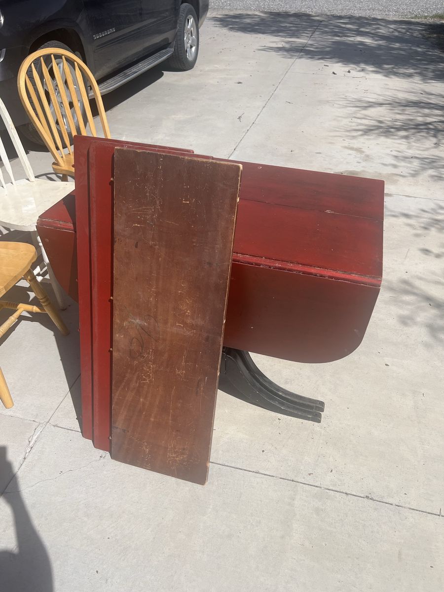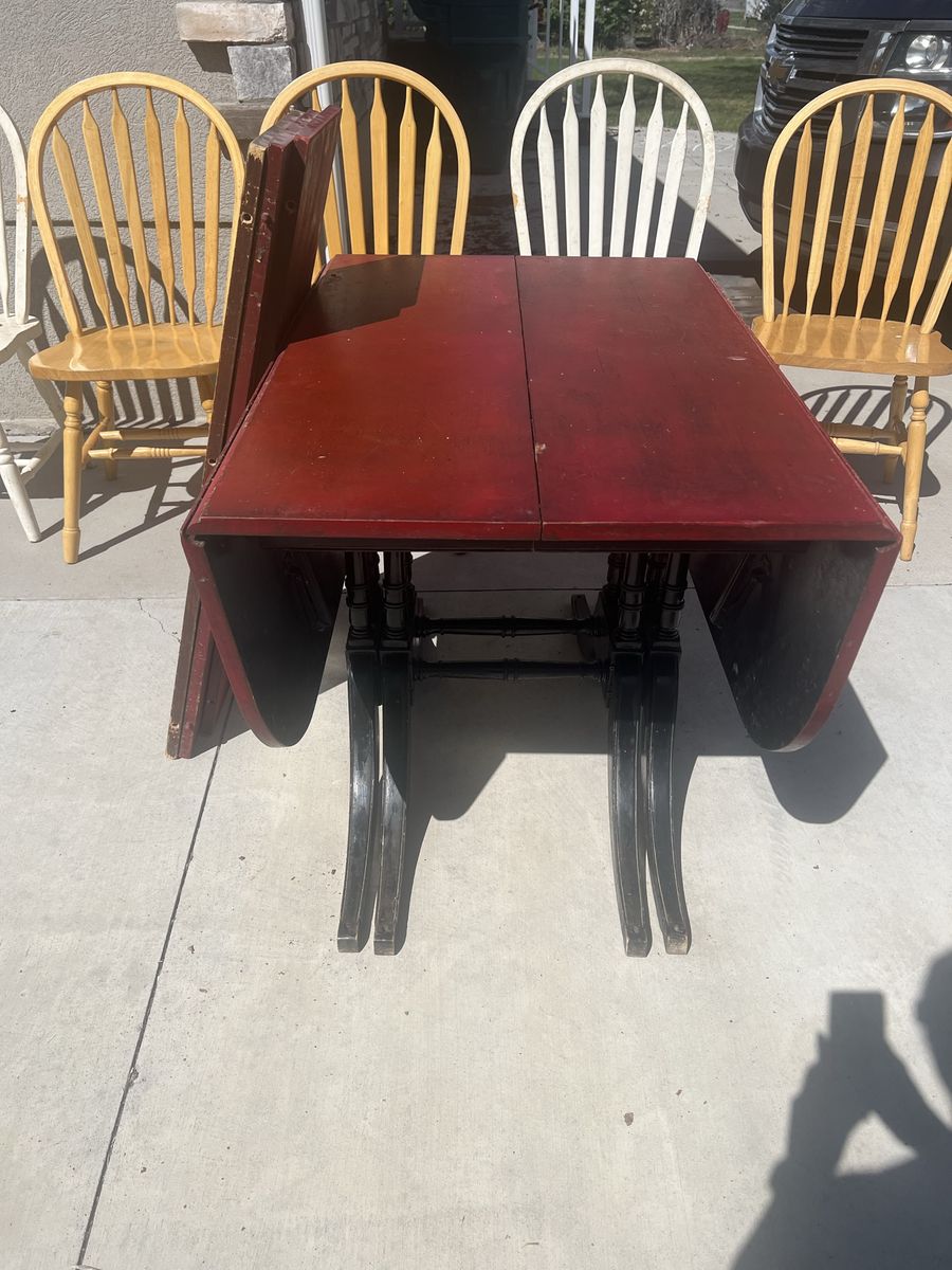 VenmoThis table and chairs would make a great project for someone who has the time/ambition. 5 chairs & table with 3 leaves. Text with any questions. I would like it gone asap, so it doesn’t get rain on it. Thanks!