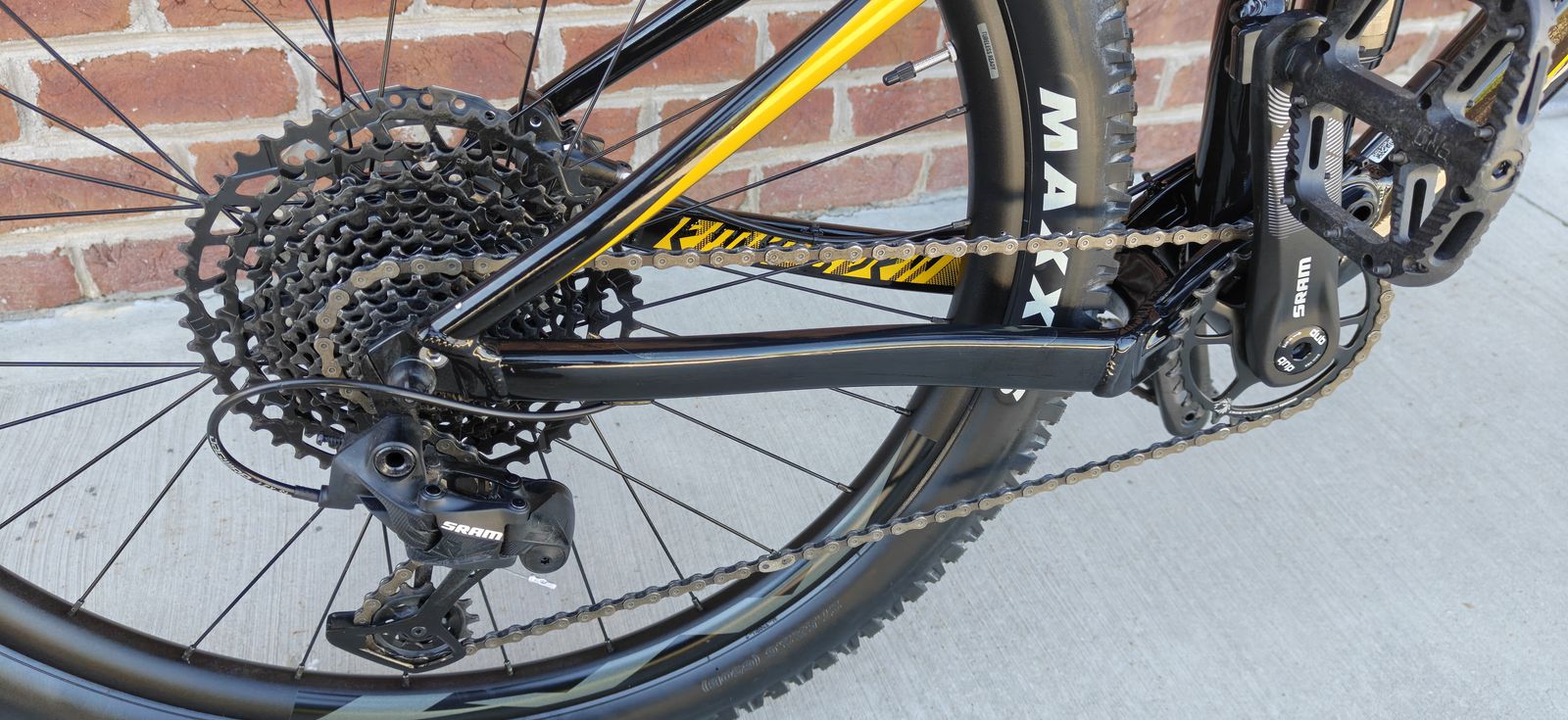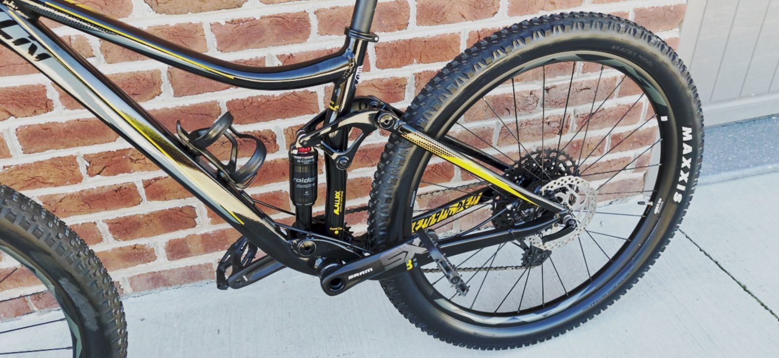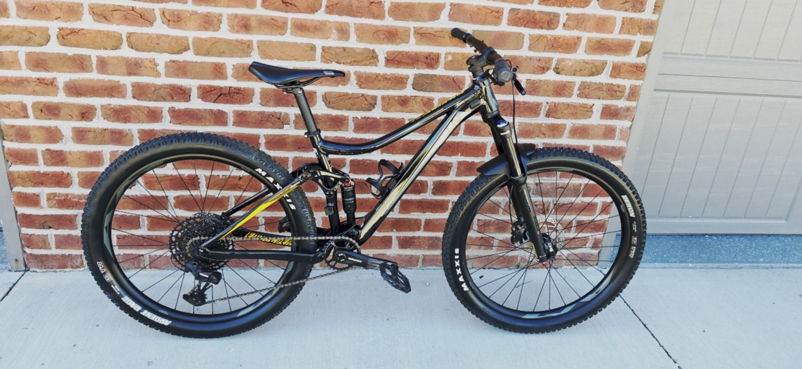 Full suspension, 120 / 130mm. Suntour Raidon fork and shock. Sram SX Eagle 12 speed drivetrain. Shimano Hydraulic Disc brakes.