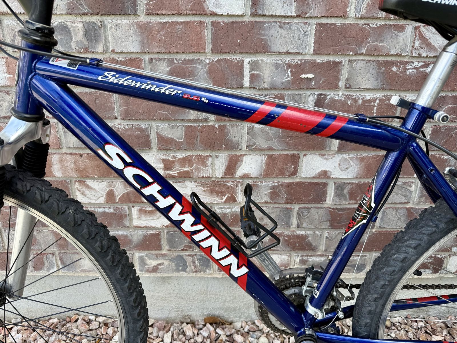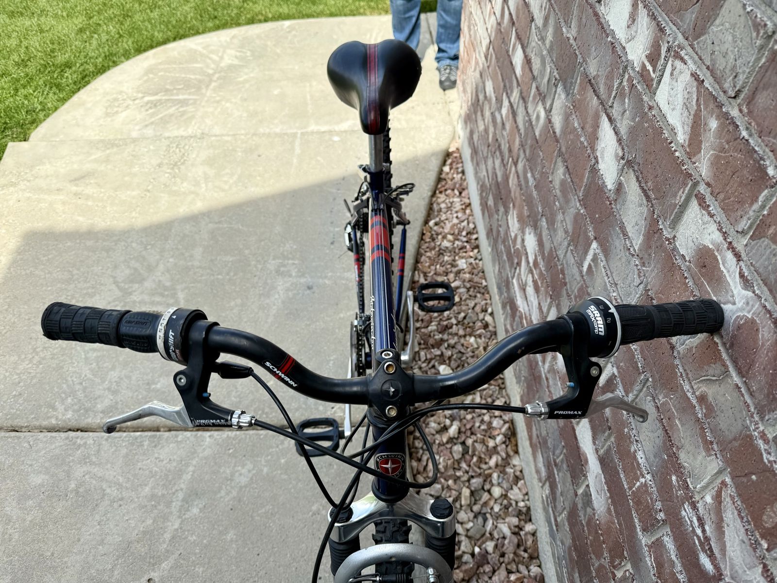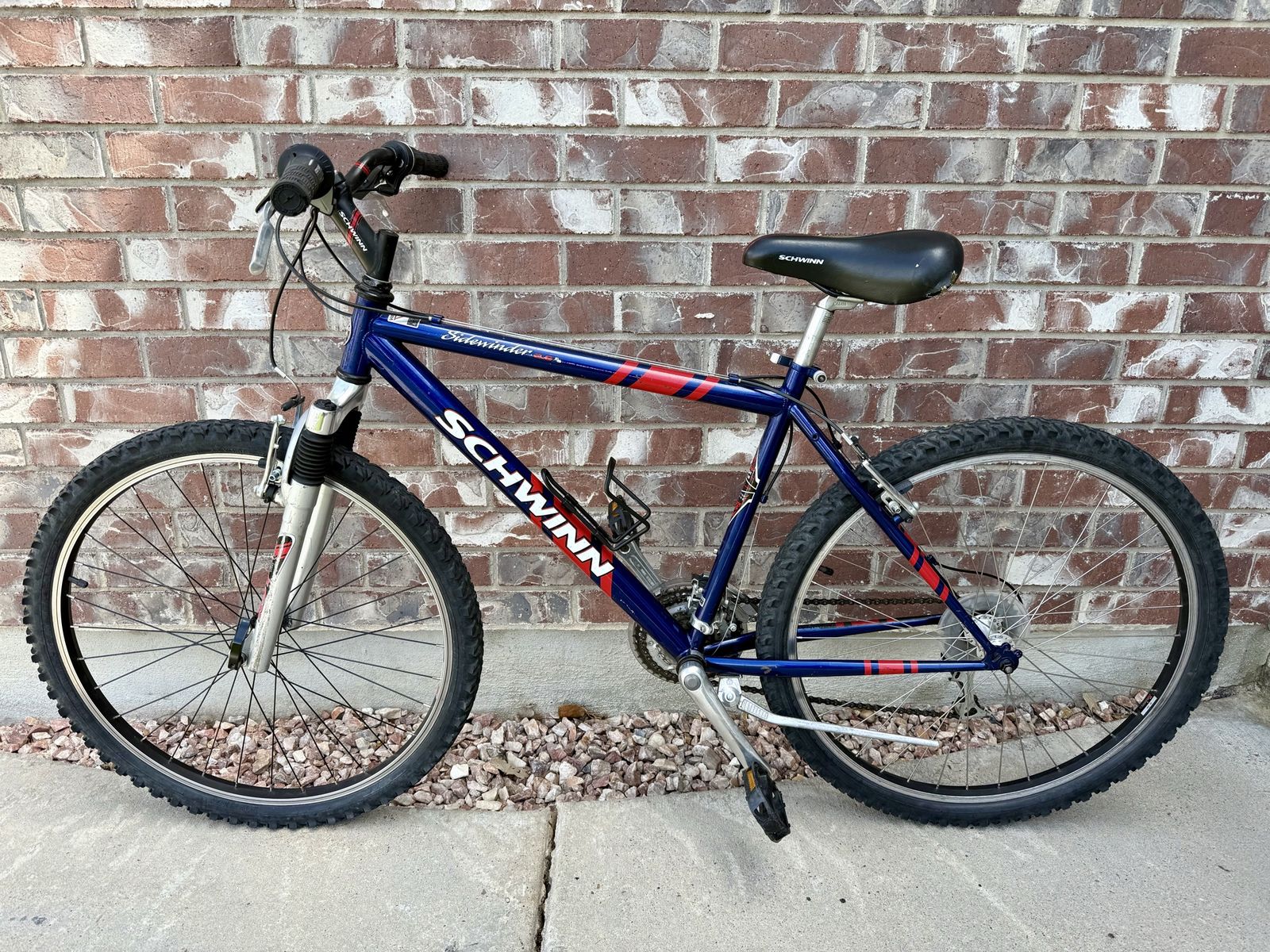 Good condition. 18“ medium frame. 26” wheels. 21 speeds(3x7). Great all arounder bike. Nice blue color with red accents.