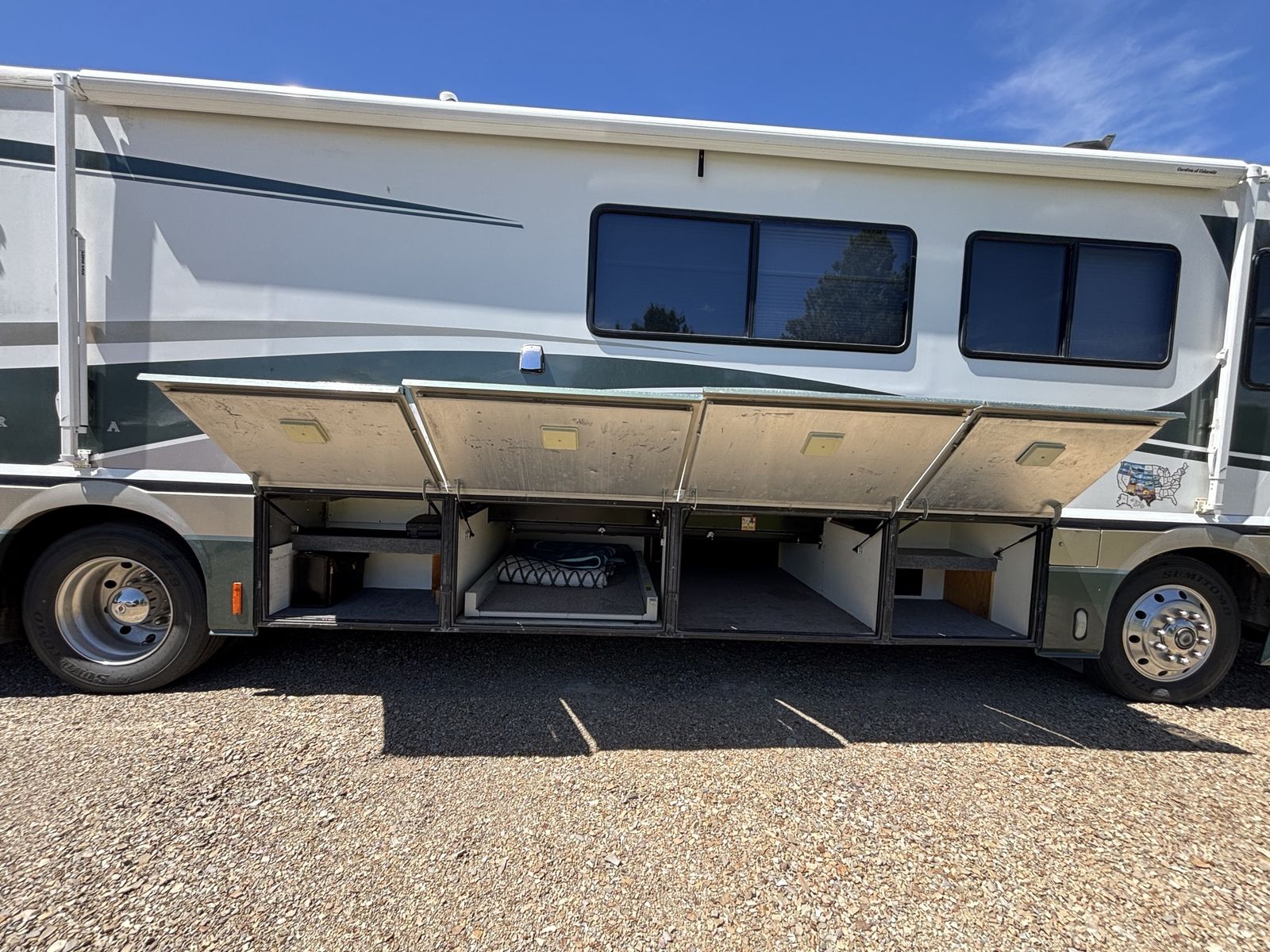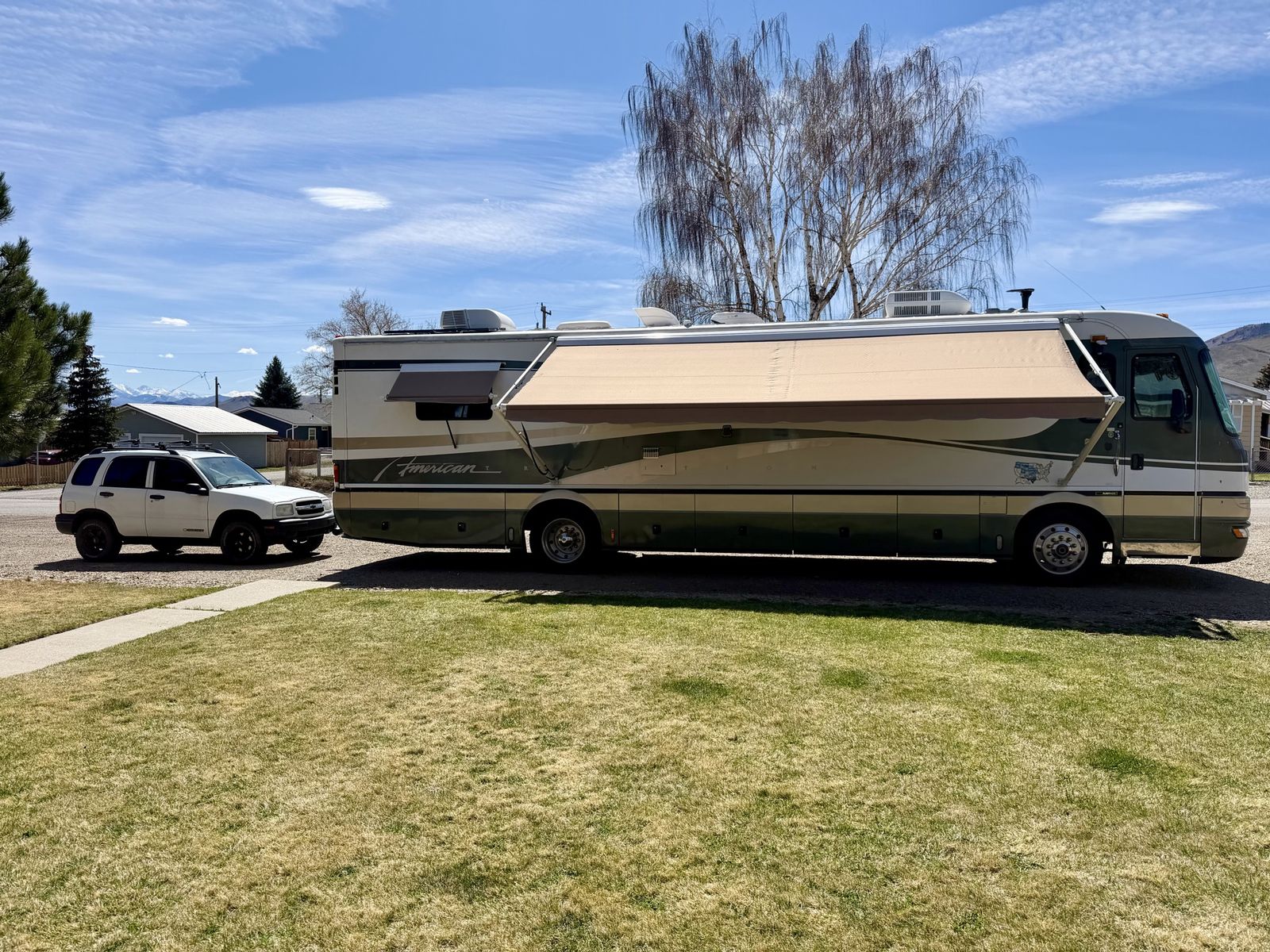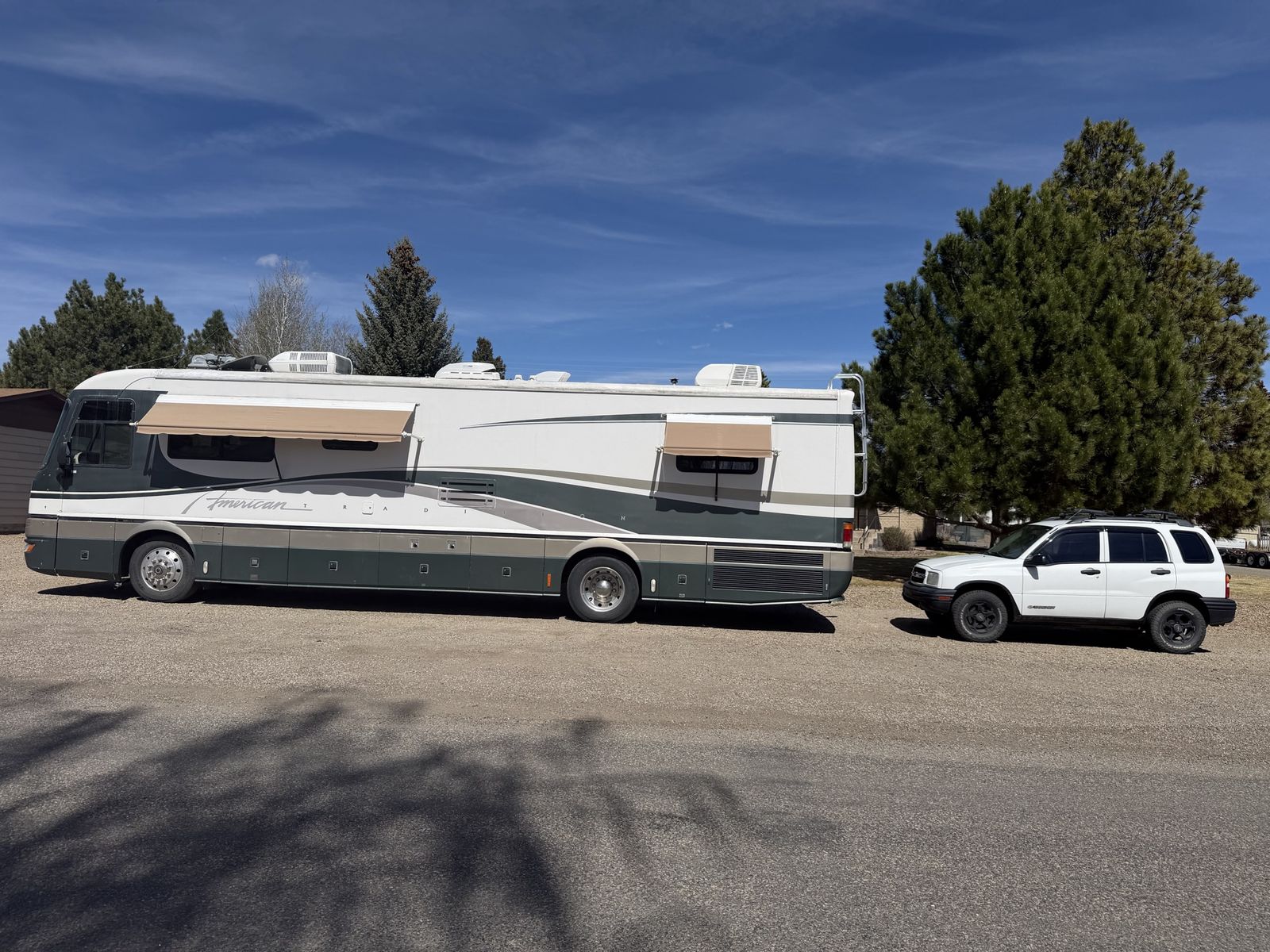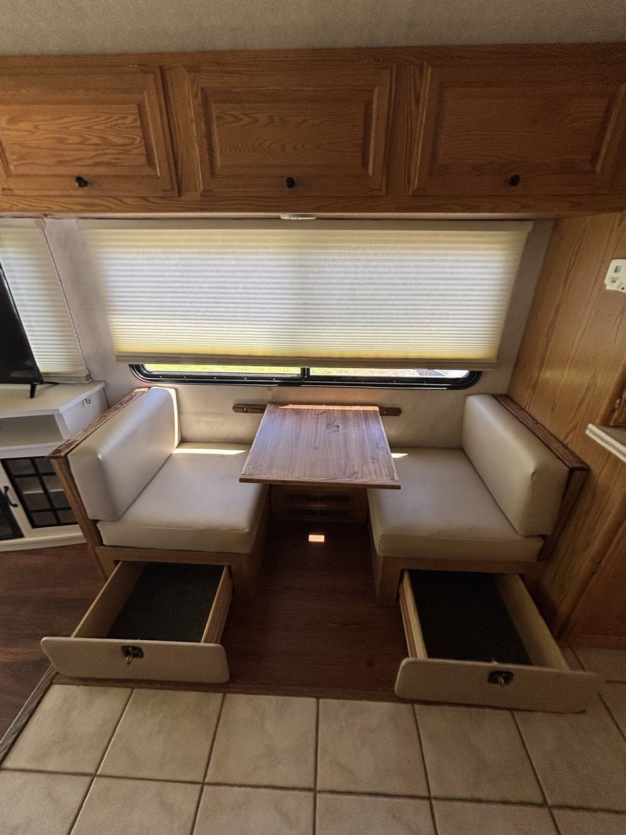 ZelleReady to travel in comfort and reliability? This 38 foot, spacious Class A layout without slides has plenty of storage, solid construction-built to last, 1999 Fleetwood American Tradition is a solid, well built coach with only 79,000 miles and all the power you need for the open road. Sale can include tow vehicle with complete towing package for an additional price. Key Features: 8.3 L Cummins Diesel Dependable and Strong Towing Power Allison Transmission-smooth and reliable shifting Onan 7500 W Diesel Generator- perfect for off grid stays Equipped with rooftop solar panels, tons of storage inside and under. Price without tow vehicle- $21,000 Sale can include tow vehicle with complete towing package, 1999 Chevrolet Tracker. Price- $24000 This is a great opportunity to own a high quality diesel pusher at an affordable price, perfect for road trips, snowbirds, or full time RV living. Too many extras to list. Call for more details. 208-320-0937 or 208-320-0970. *Bikes and Kayaks are not included