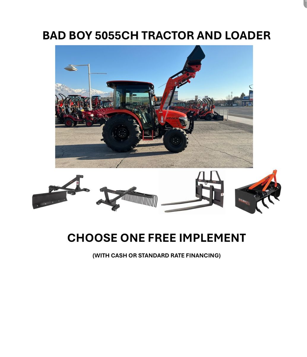 Bad Boy 5055CH Cab Tractor and Loader Cash Price $42,995 Finance Price $44,495 (Does Not Include Taxes, Fees Or Trades)