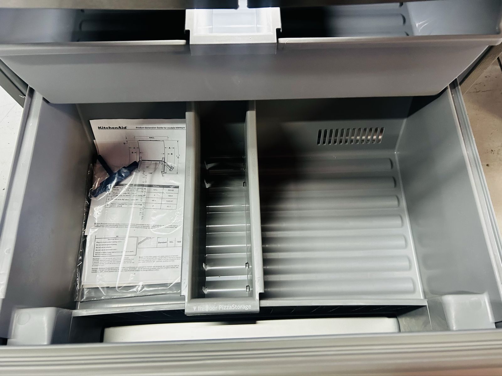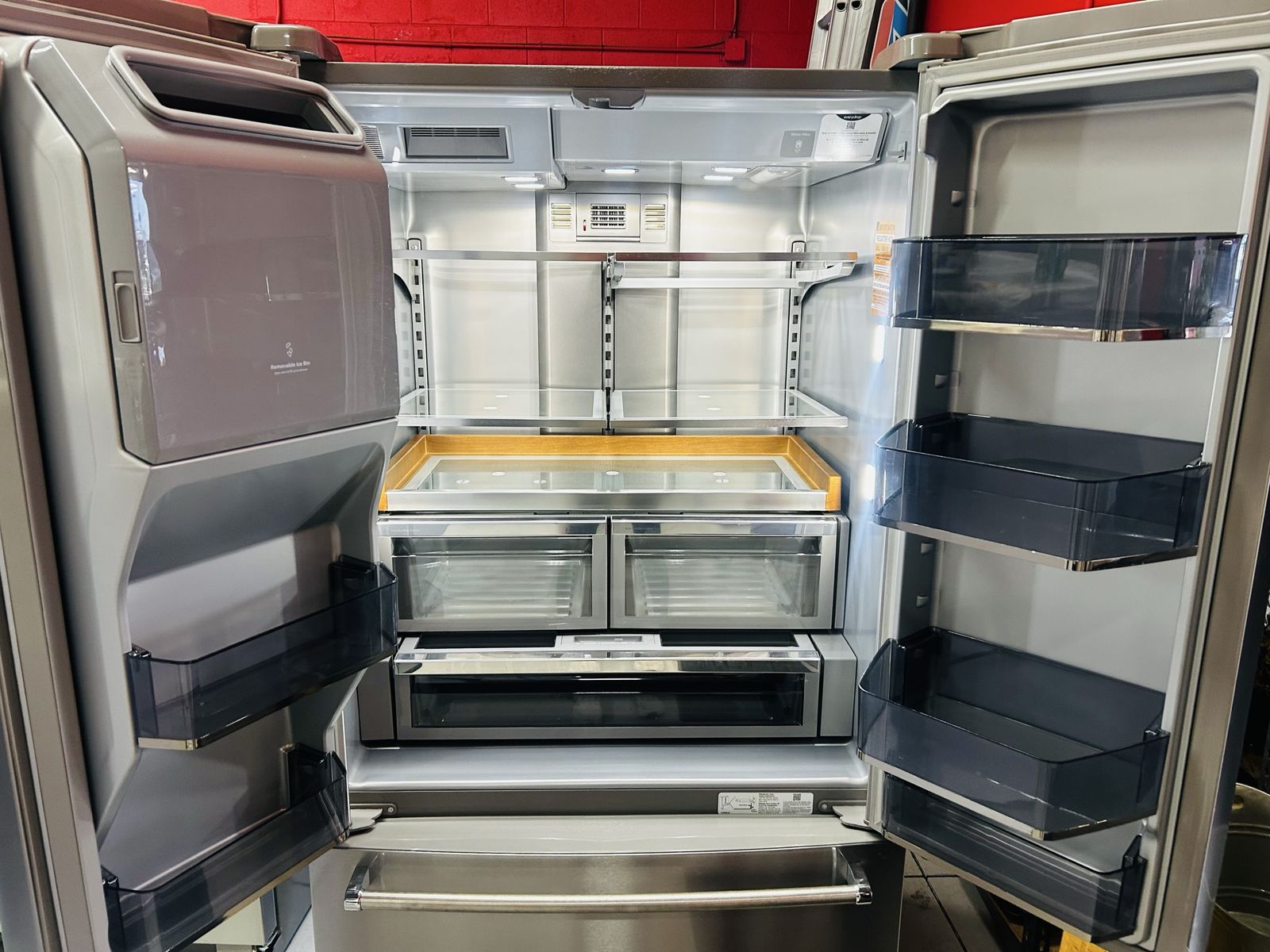 26.8 Cu. Ft. Standard-Depth French Door Refrigerator with Exterior Ice and Water Dispenser. This standard-depth french door refrigerator keeps ingredients fresh and in easy reach with specialized spaces that make room for everything from salmon to sangria. A full-width Pull Out Tray fits platters and casserole dishes without stacking, while a Slide-Away Shelf adjusts to accommodate tall pitchers and carafes. The Extend Fresh Temperature Management System maintains optimal temperatures for fresh and frozen foods. New/Open Box/Scratch N Dent Delivery/install available. W 36” D 32” H 68 1/4”