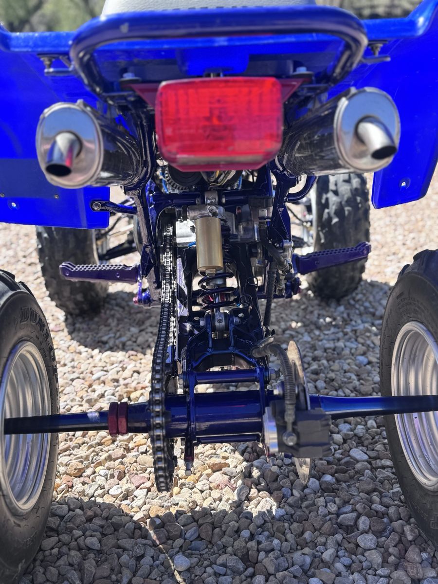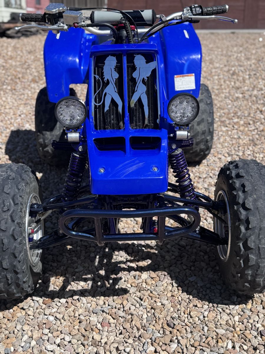 This quad has a fresh 4 mil stroker motor. It’s got hyflo built water pump. Mod quad cool head with 21cc stroker domes. Slp racing pipes. K&N air filters and a bunch of built custom covers. The chassis has been powder coated and every bearing and bushing has been replaced in the motor and in the chassis. Please ask me any questions you have on the quad. Im only selling because I’m moving soon. Shoot me an offer let’s see if we can make a deal.