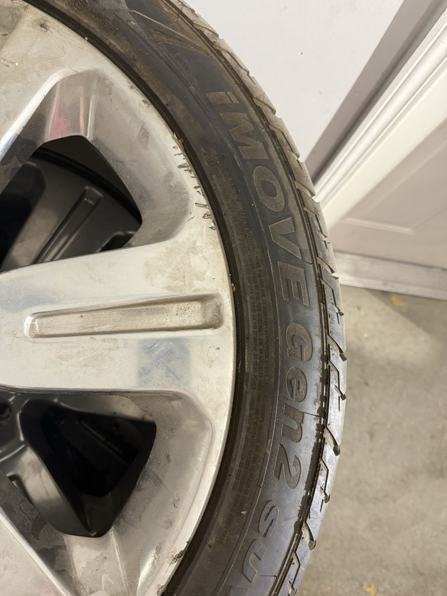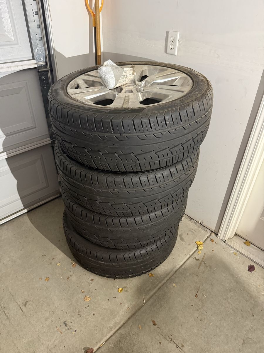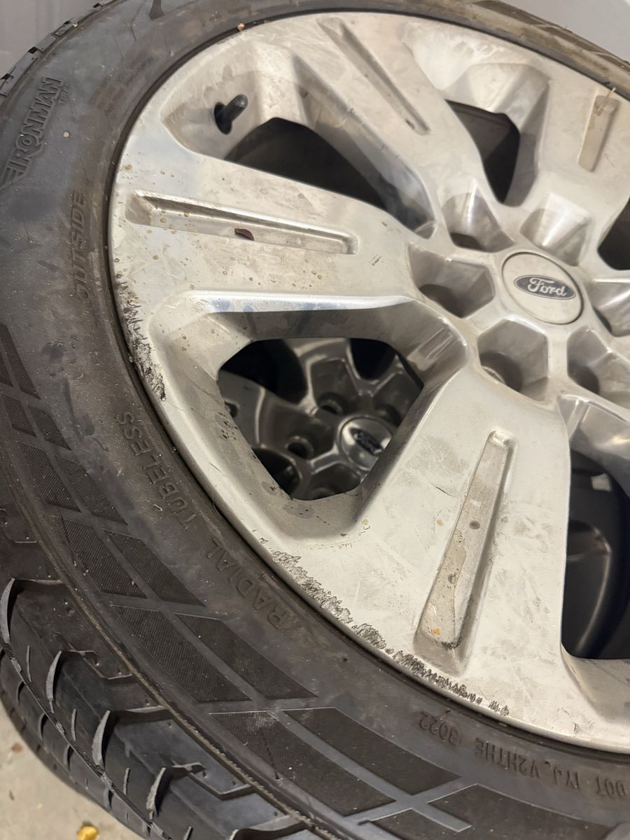 Used set of 275/45/r22 wheels and tires off of a 17 F-150 limited. The wheels do have curb rash, the wheels do have tire pressure sensors. The tires have a decent amount of tread left. A set of lock nuts and socket are included.