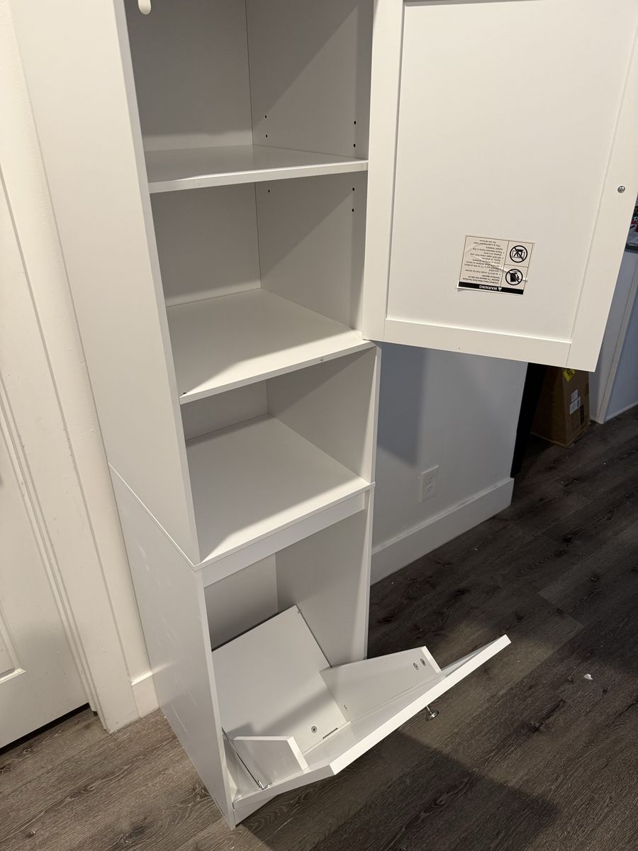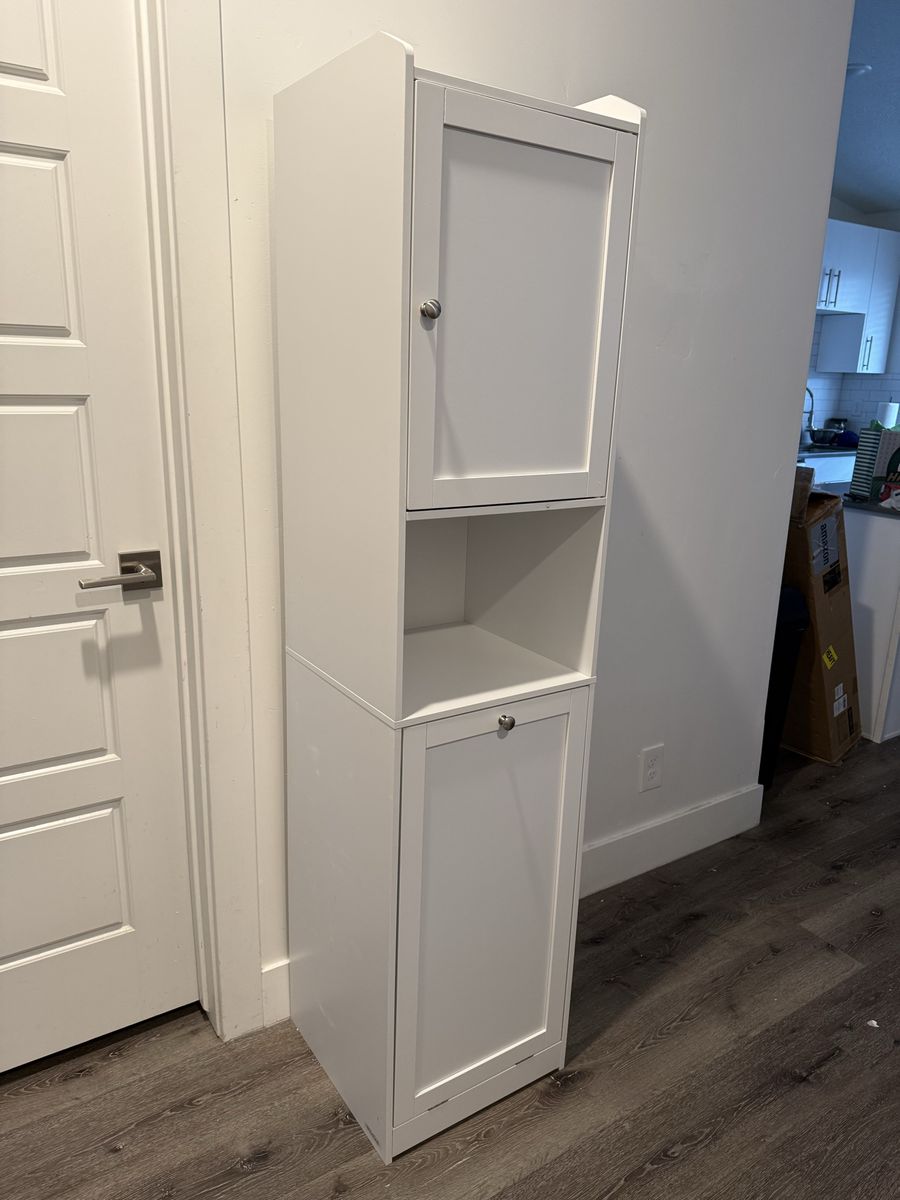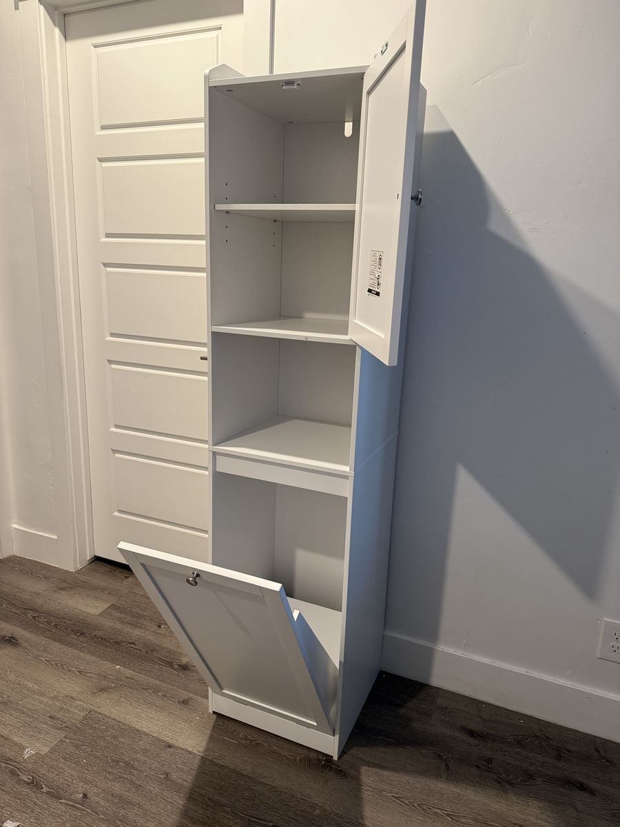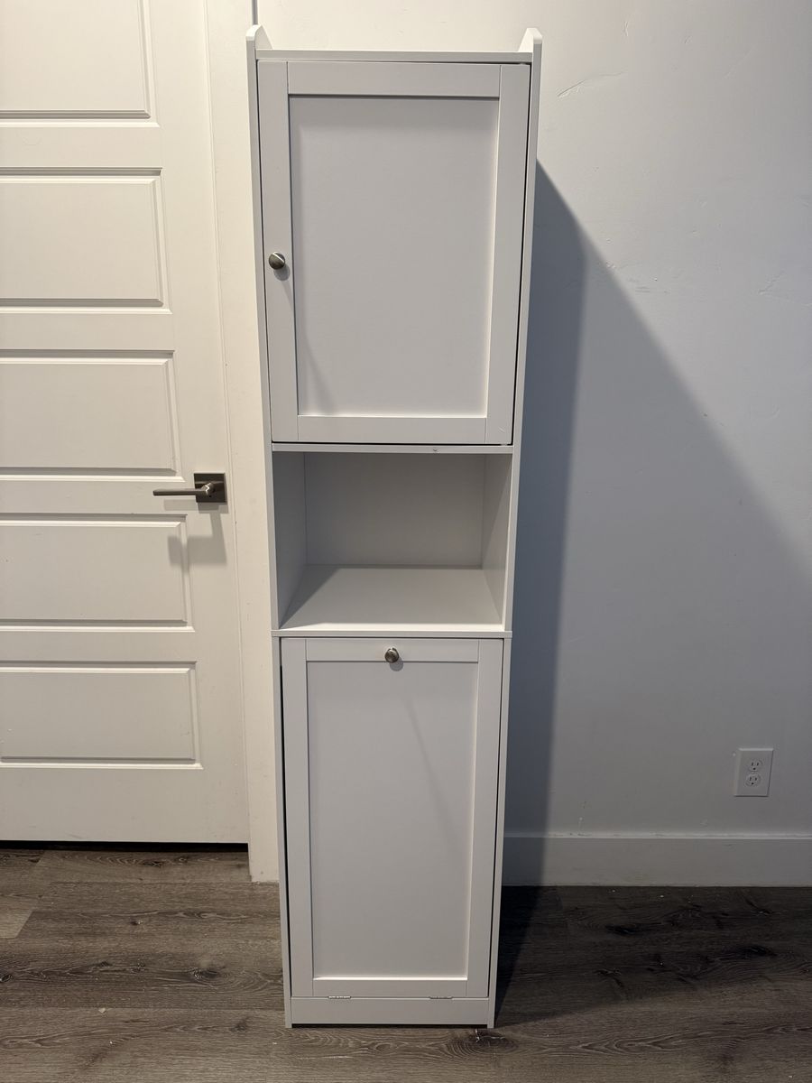 VenmoBrand New Tall Bathroom Storage Cabinet with Door, Pull Out Removable Laundry Basket Cabinet & Adjustable Shelf, Freestanding Narrow Cabinet for Bathroom, Living Room, Small Spaces, White