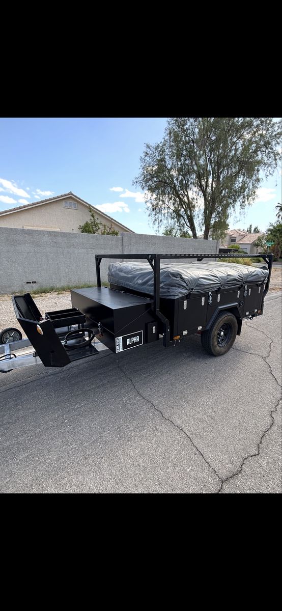 Venmo2020 Black Series Alpha Overland Trailer Great condition. We’ve used it four times (six nights total). Tires in great shape. Tons of storage and slide out cabinets. Dual independent suspension. Articulating trailer hitch with off-road tires and high clearance. Made for deep, off the grid camping. Easy set up. Queen bed, plenty of interior space. Fold out kitchen sink and table for meal prep. Water pump. Inverter with two power outlets. Has an exterior awning I never used. LED strip lighting. Anderson charger + hookup to charge battery while driving. Extra canvas to attach full annex room for additional space (tons of space). There is a small tear in the mesh on one of the tent window screens. I can send a video or two if interested.