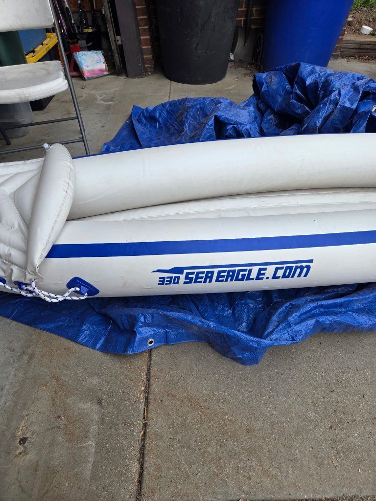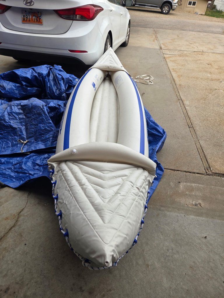 VenmoLightweight 11ft inflatable kayak, great for lakes or calm water. Holds 2 people (up to 500 lbs), packs down super small, and easy to carry at only 26 lbs.It's in good used condition — just needs a quick clean. No major issues from what I can see.