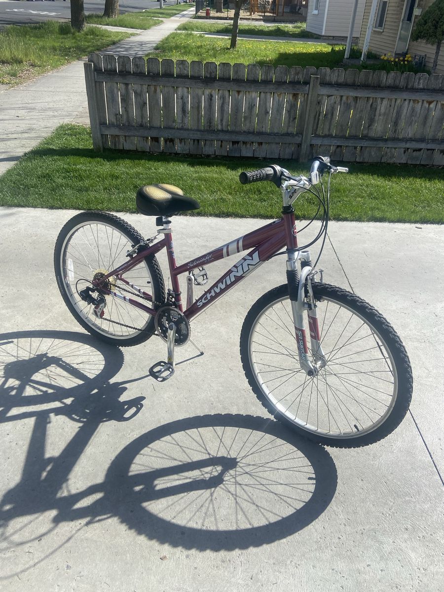 VenmoThis is a very nice Schwinn Sidewinder, 21 speed, 26 inch wheels, good tires, new tube in front, great comfortable seat. Everything works great. Ready for your ride!