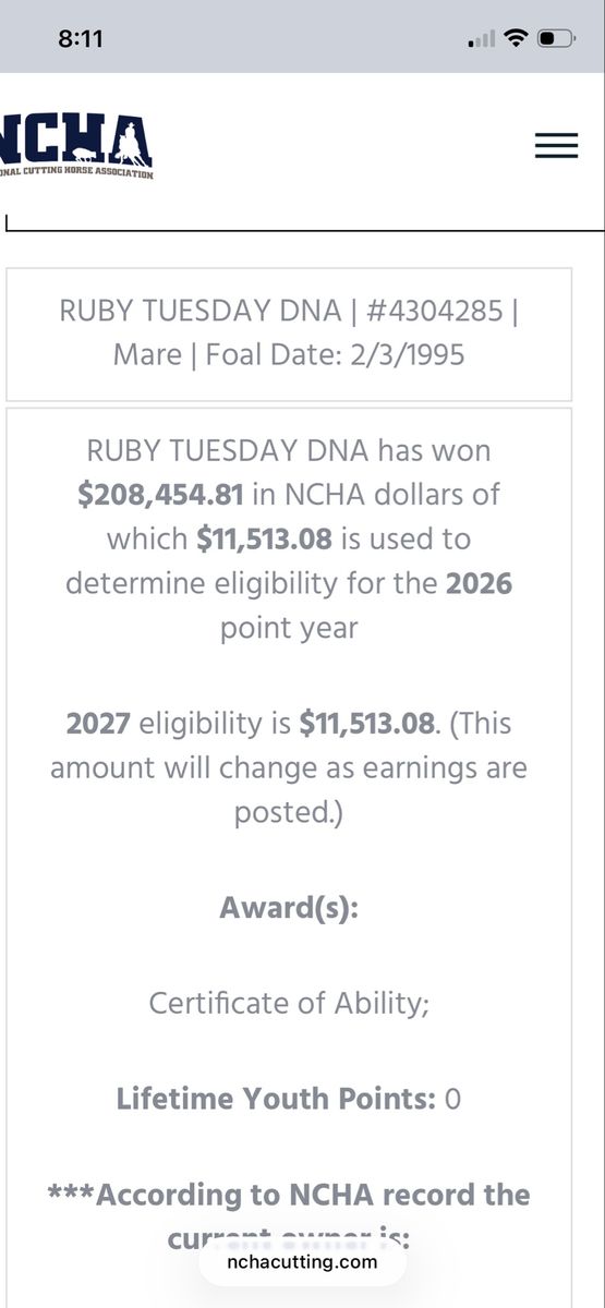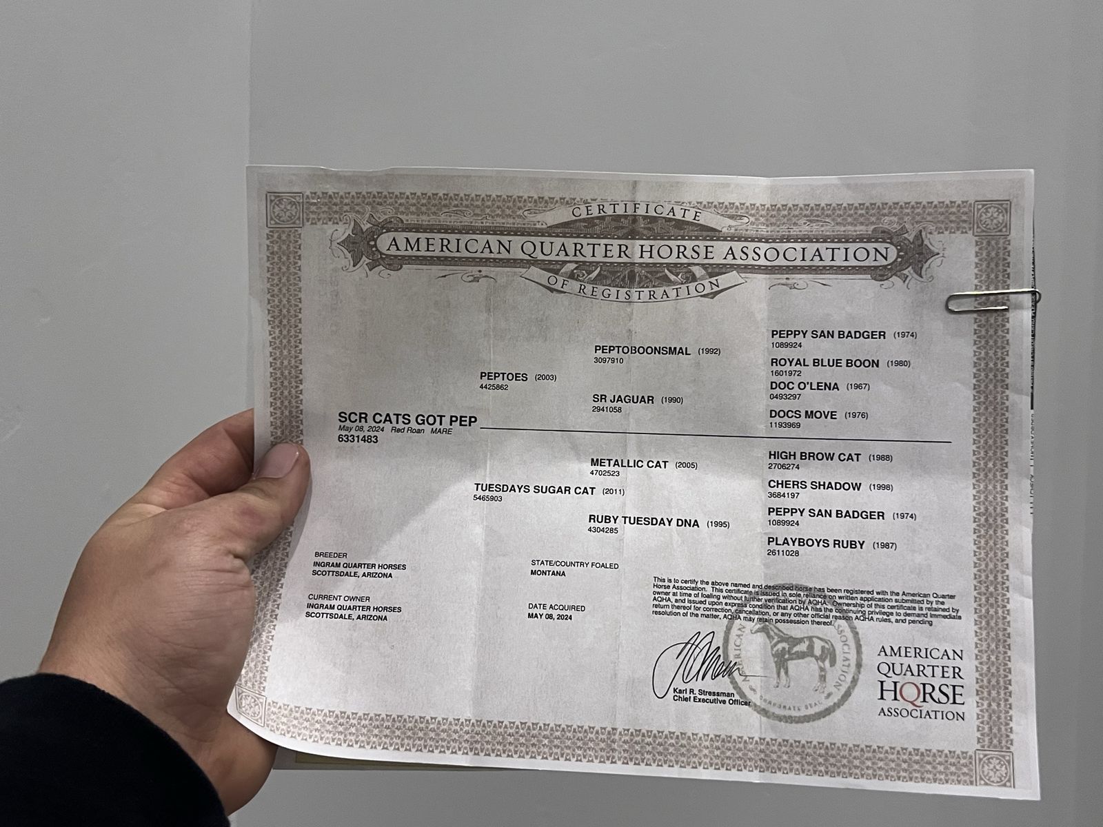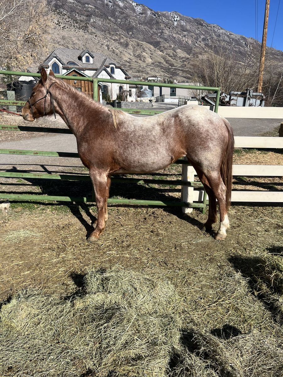 Phenomenal red roan filly up for consideration! This fancy filly stands 14.2 and is ready to get started your way. She is Riata Buckle eligible! They talk about maternal lines and boy does this filly have the pedigree. Her second dam is Ruby Tuesday DNA who has produced tons of winners and she herself has LTE of $208,454. This filly is the real deal! Take her the rope horse route or cut, cowhorse, or ranch on her. She’d be a fabulous addition to anyone’s program. She has not been color tested but both her parents are red roan.