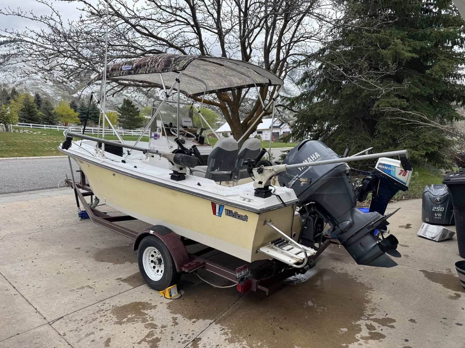 1989 wellcraft center console with 2003 Yamaha 115hp outboard. Comes with 3 electric Downriggers, Honda 7.5hp 4 stroke kicker motor, extra props, and plenty of gear. Asking $5,900 or best offer. Will consider trades.