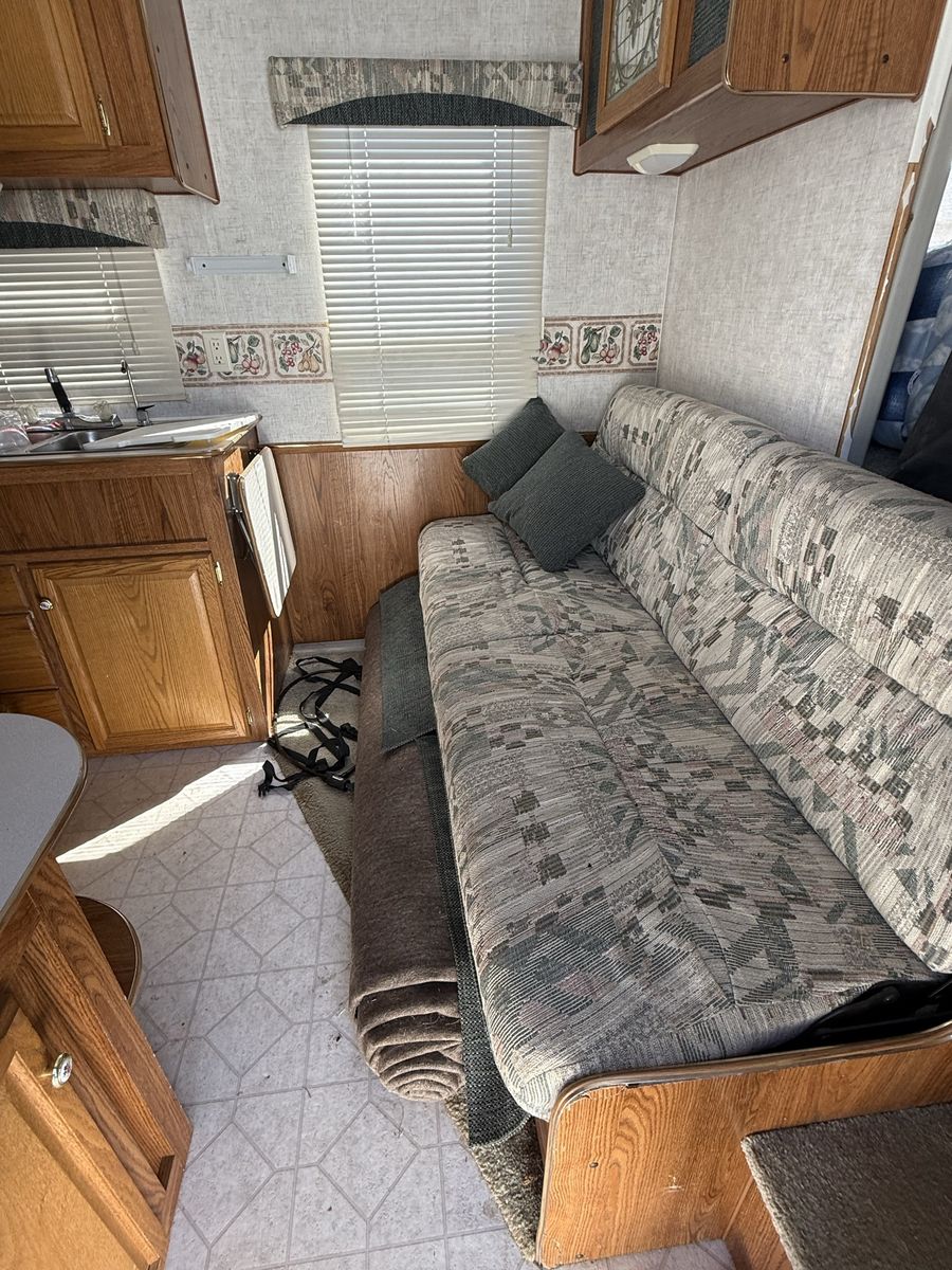 Our family has outgrown our little 5th wheel! It’s a 2000 and we have had it for about 8 years. It has served us well in that time. It’s 27ft and light with no slide outs. It has a goose neck attached. The front has been reinforced for pulling doubles.