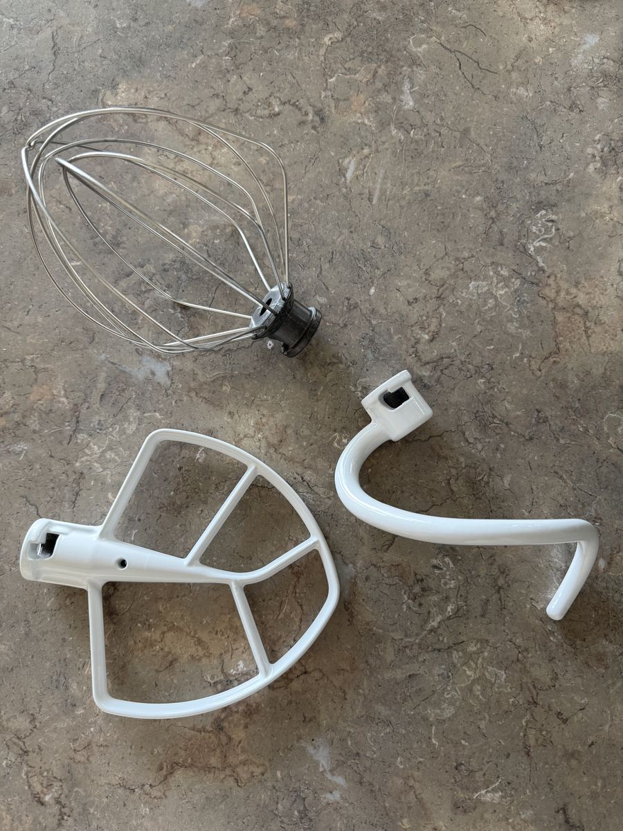 Comes with the 5 Quart Stainless Steel Bowl with handle, Coated Flat Beater, Powerknead Spiral Dough Hook, 6-Wire Whip