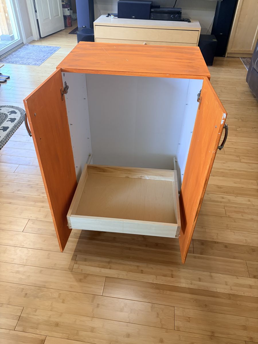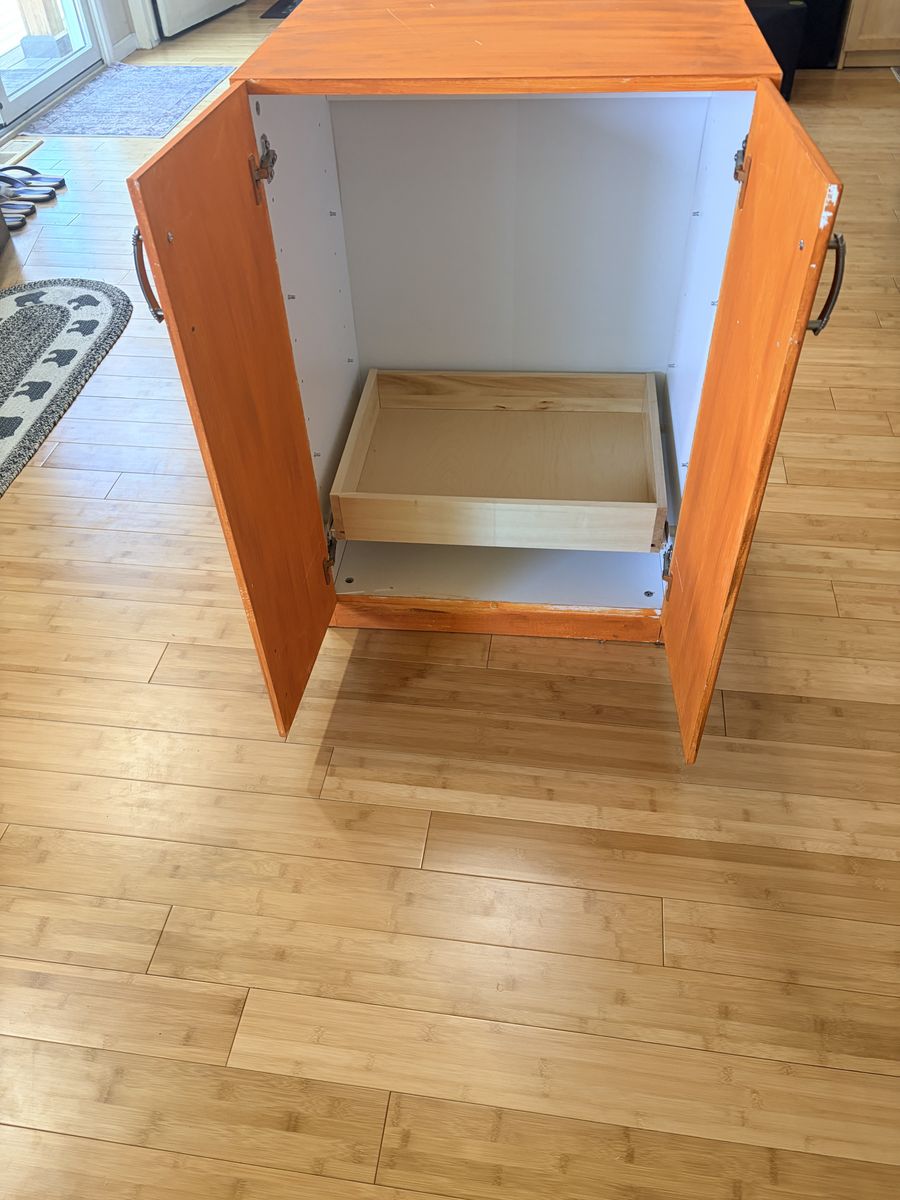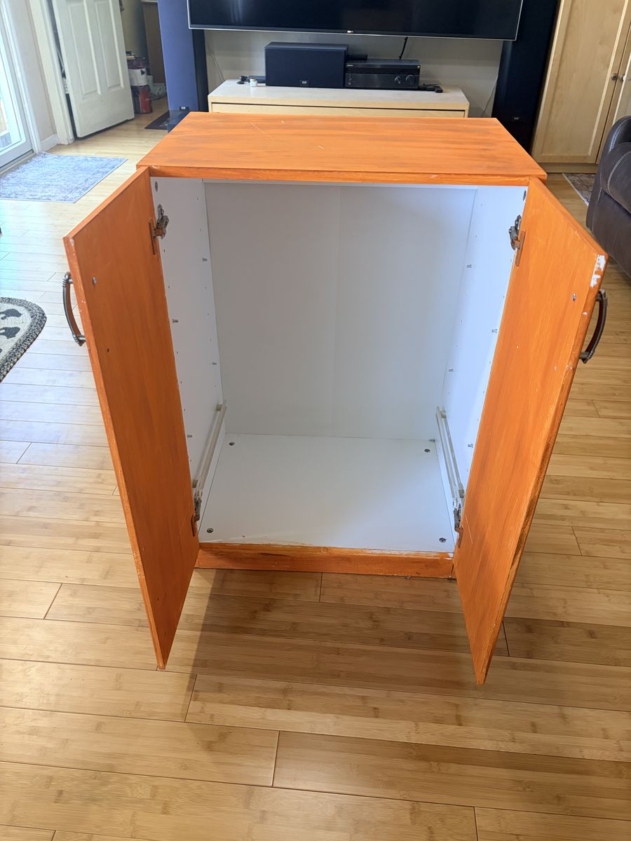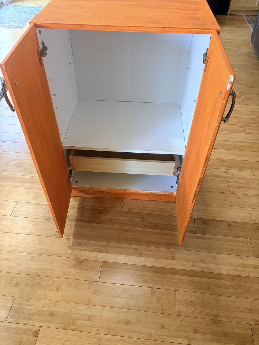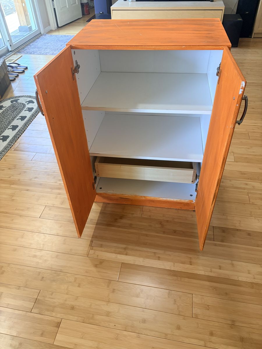 Solid Wood Storage Cabinet – 2 Doors + Pull-Out Drawer – Great Condition