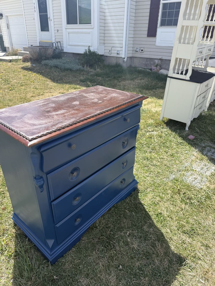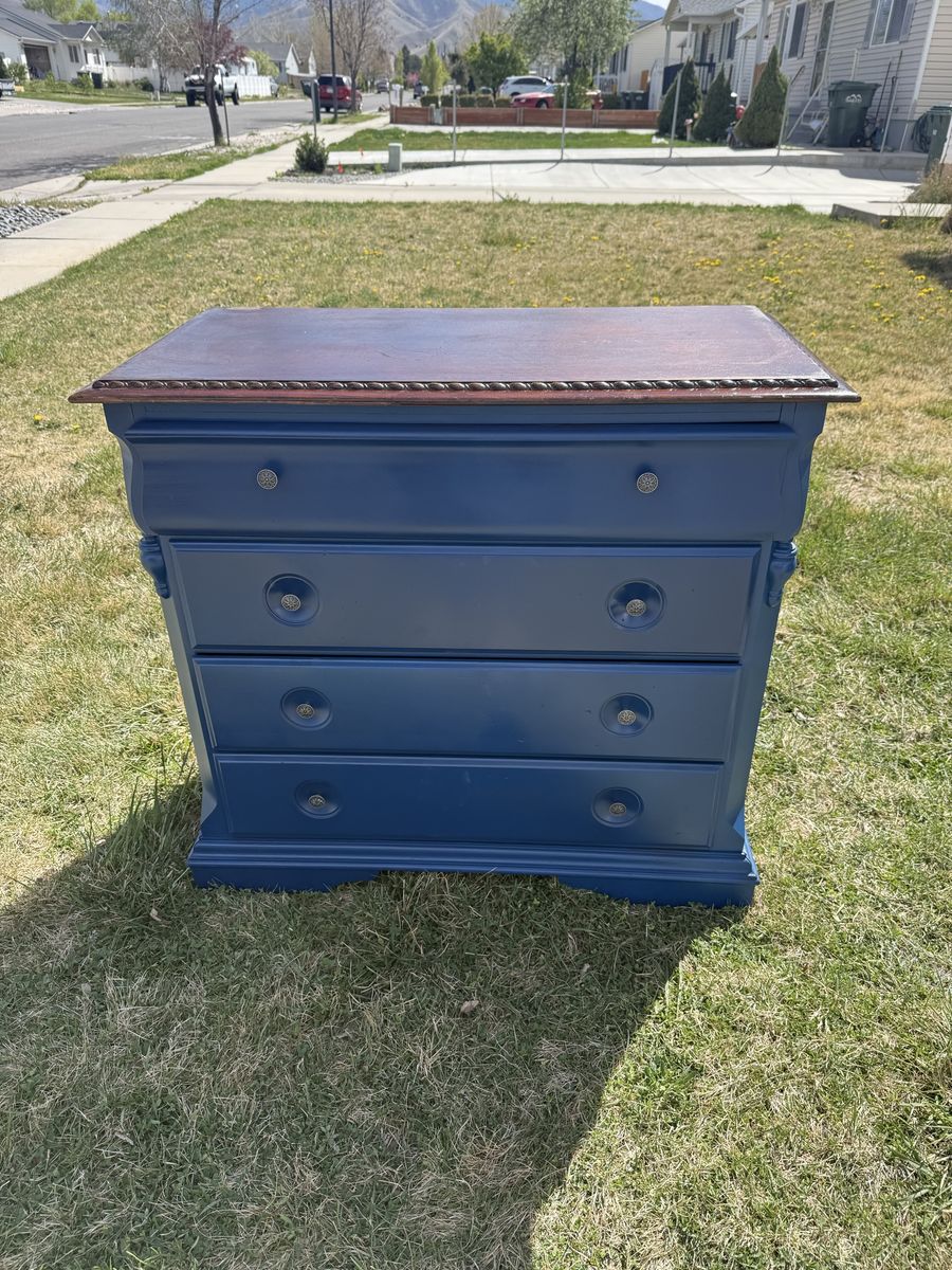 VenmoRefinished Blue dresser, 39 inches wide 36 inches tall 20 inches deep. Solid wood! Asking $50