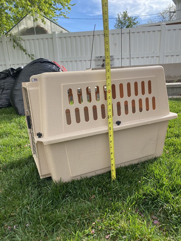 Venmo I have a small/medium size dog kennel, has some wear and tear some chew marks on the outside corner but other than that, it is in great condition and still has a lot of life left. If anyone is interested in a inexpensive option for a dog kennel check it out and let me know. I’m asking $25 or best offer .
