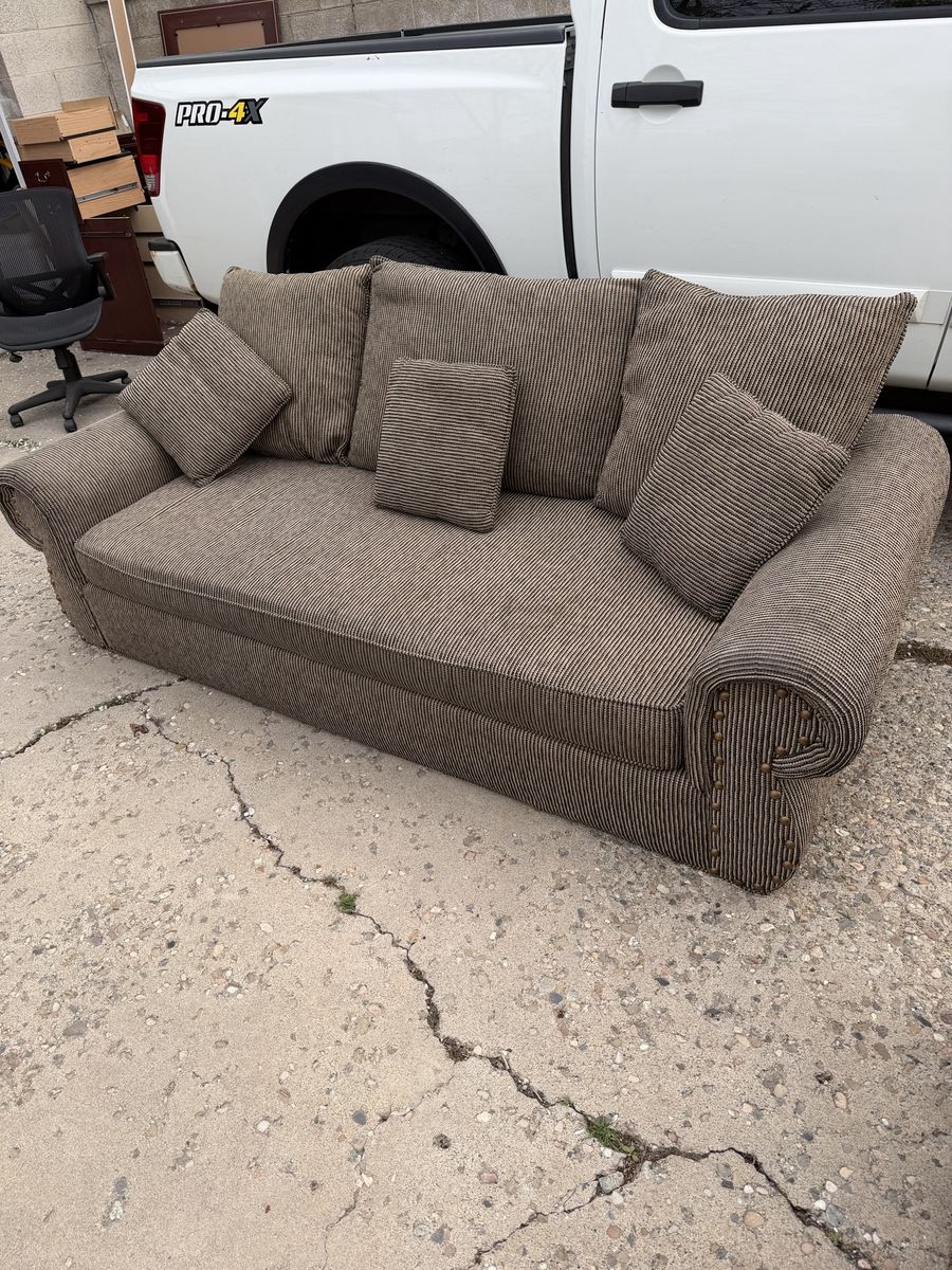PayPalSelling this matching couch + loveseat set in great condition! Neutral brown/tan color that fits with just about any decor. Super comfortable with deep cushions and comes with accent pillows.