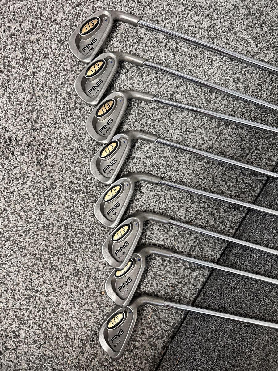 VenmoPing I3 irons. Had them re-gripped two years ago. Cushin regular shaft. Blue dot. P-3. 3 iron was damaged by my kids. Great clubs. Best offer. Text preferred. 801-830-5155