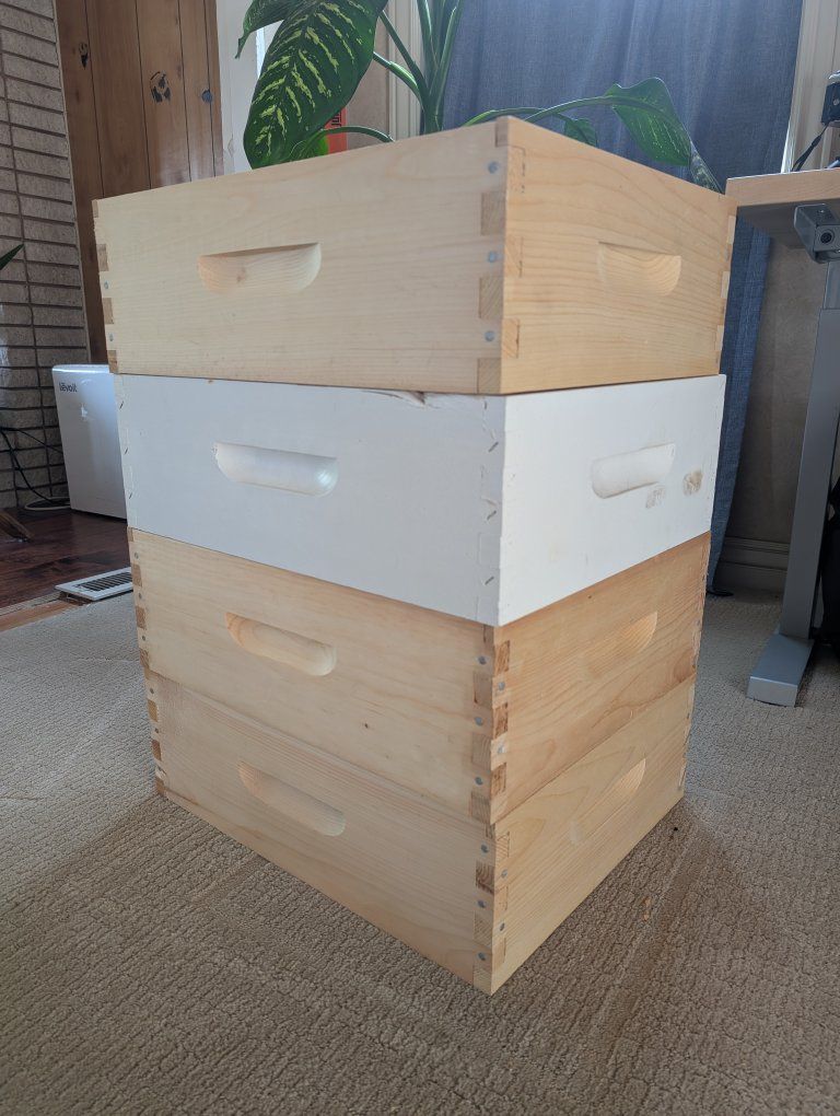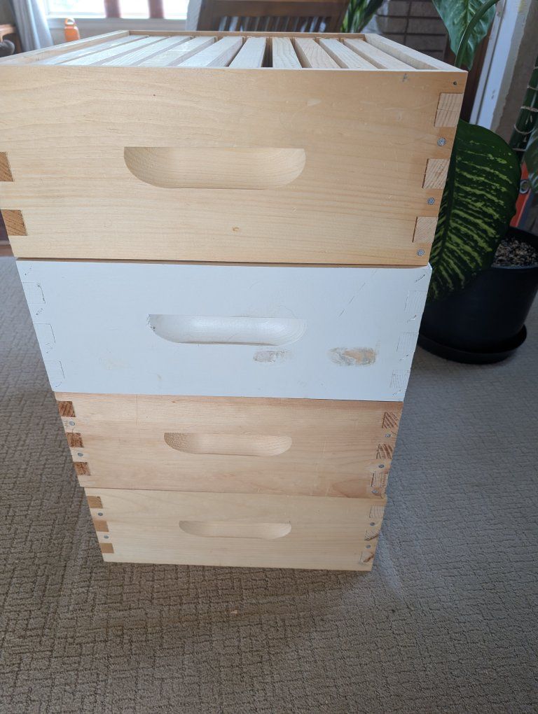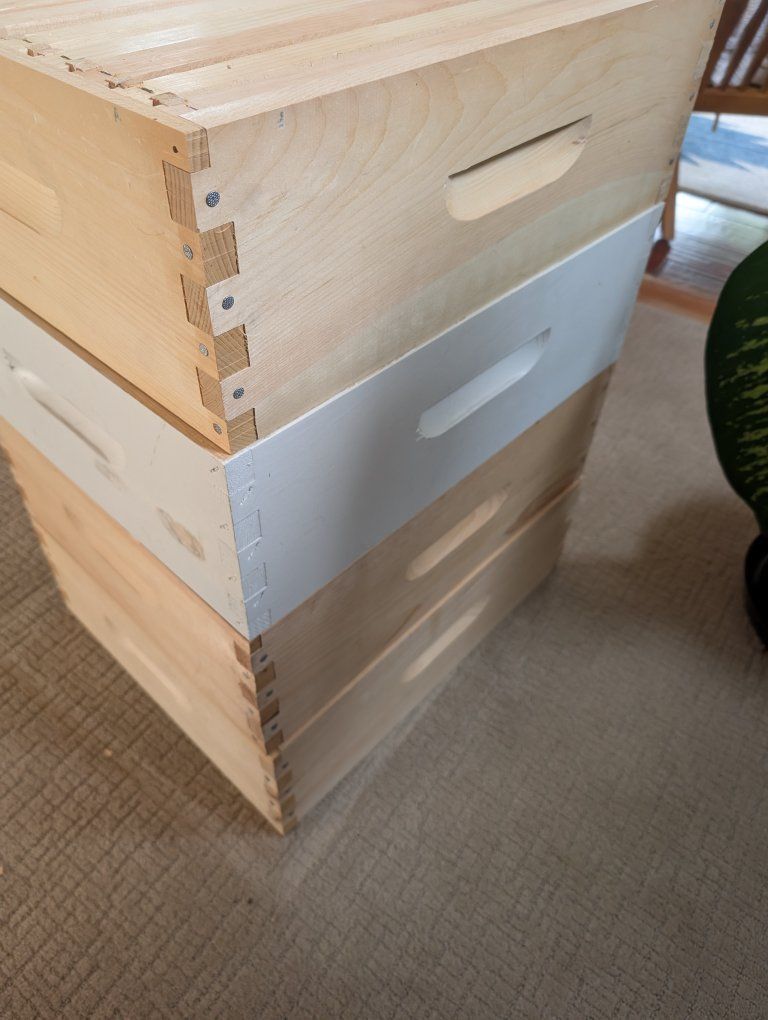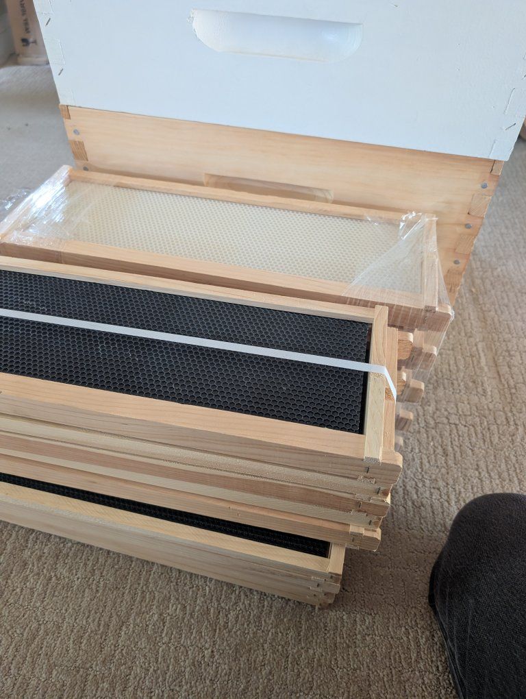 VenmoCompletely new and stored indoors. We have a mix of black and white wax coated foundation because we wanted to have the option of medium brood boxes not just supers. Made from select grade pine. Foundations are wax coated.