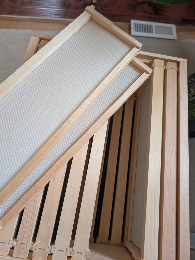 $55 for one medium box with frames & wax coated foundation, all assembled. $110 if you want two: 20 assembled frames with wax coated foundation (10 black and 10 white).