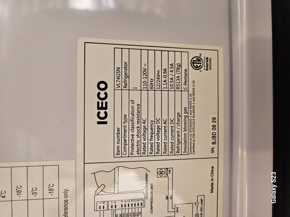 ICECO VL74 single zone freezer / fridge cooler works great, like new. This has only beed used a handful of times. We bought new and pulled it out of our sprinter van and no longer need it. Runs on 12v, 24v, 120, or 240, very efficient, no issues or smells. 74 liter (78qt) volume. Local, cash only.