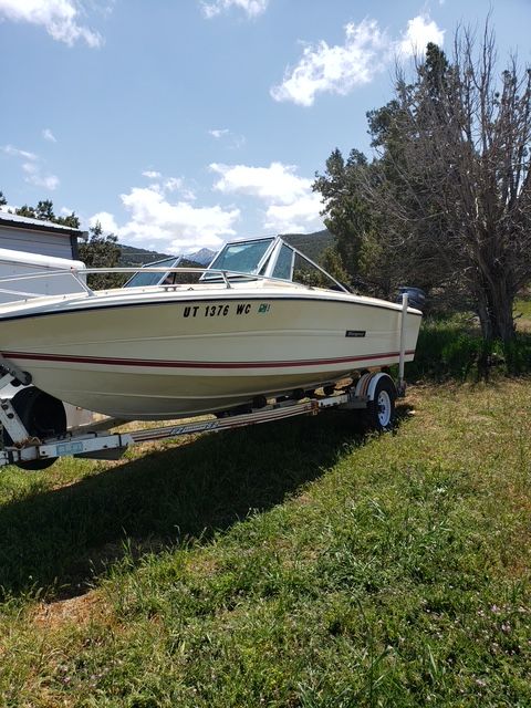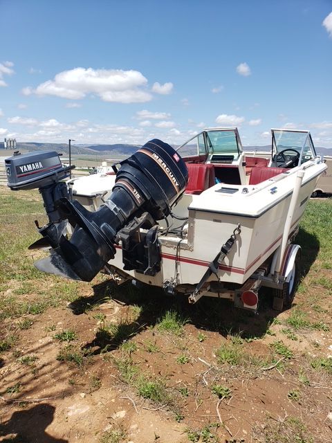 VenmoNice fishing boat. Comes with Yamaha trolling motor (great shape), Minkota electric motor, 115 HP Mercury outboard - not running - needs work or replacement. Trailer with new tires, life jackets, fish finder, cover, bimini top, other miscellaneous treasures!