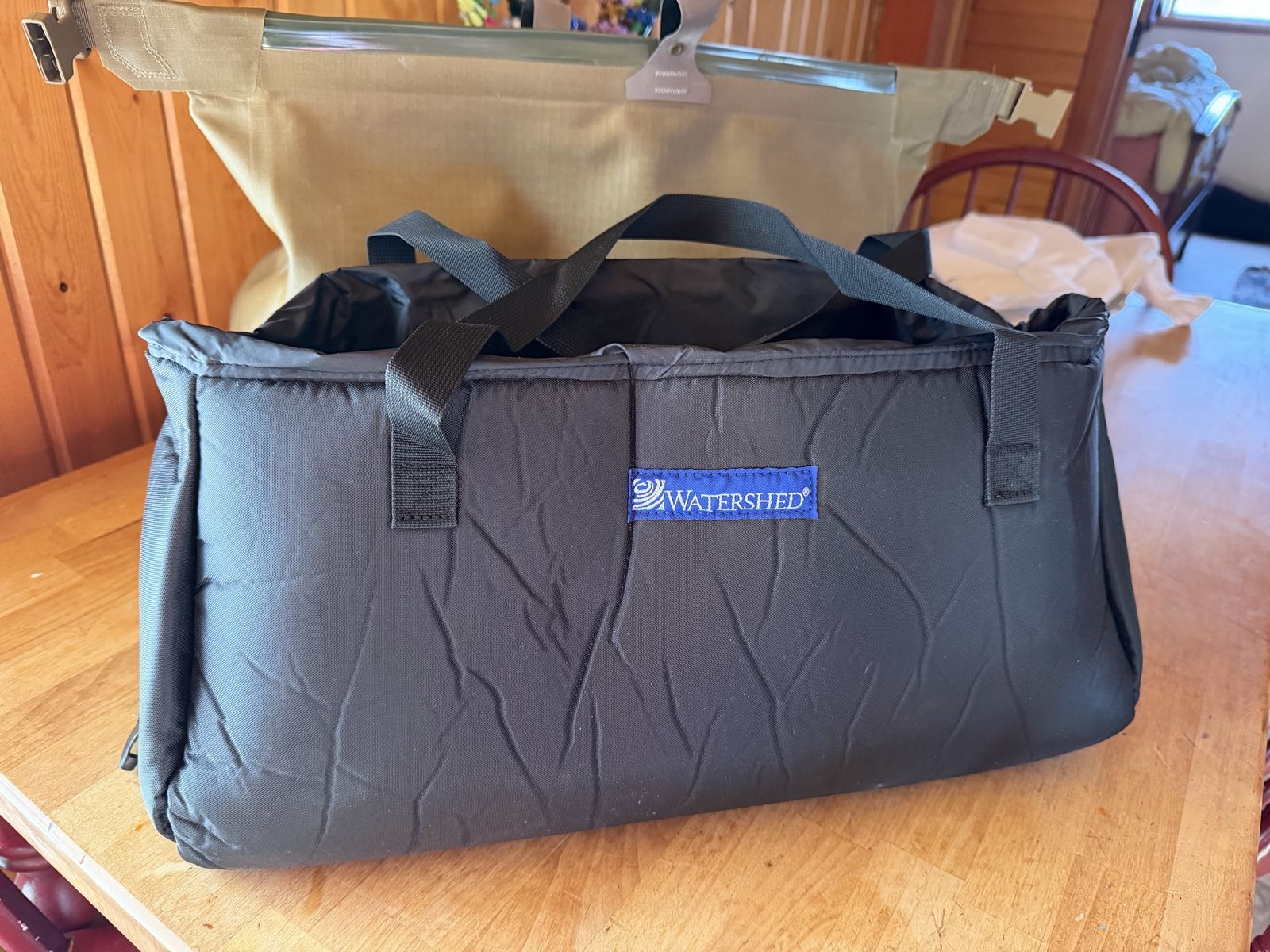 PayPalWatershed padded camera bag (55) and camera padded divider set (45). This is a super lightweight padded stand alone bag with divider kit to adjust to your needs. Will fit a DSLR with large telephoto lens. This bag is compatable with the Watershed Chattioga dry bag but works great as is as well.
