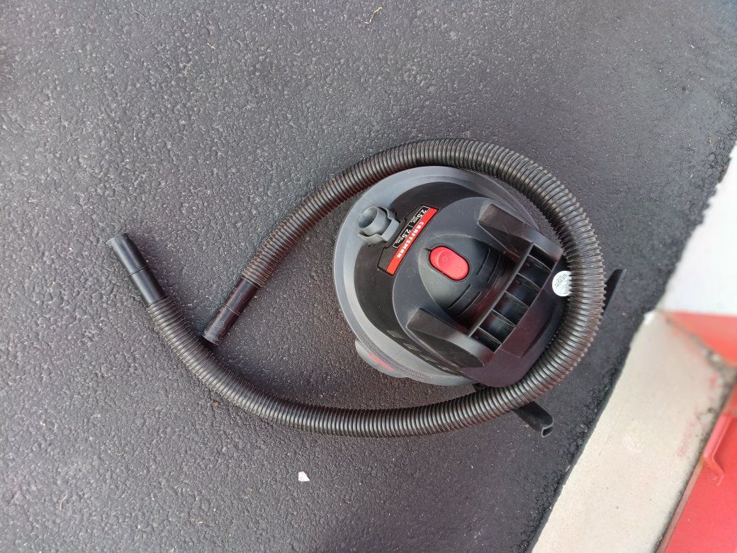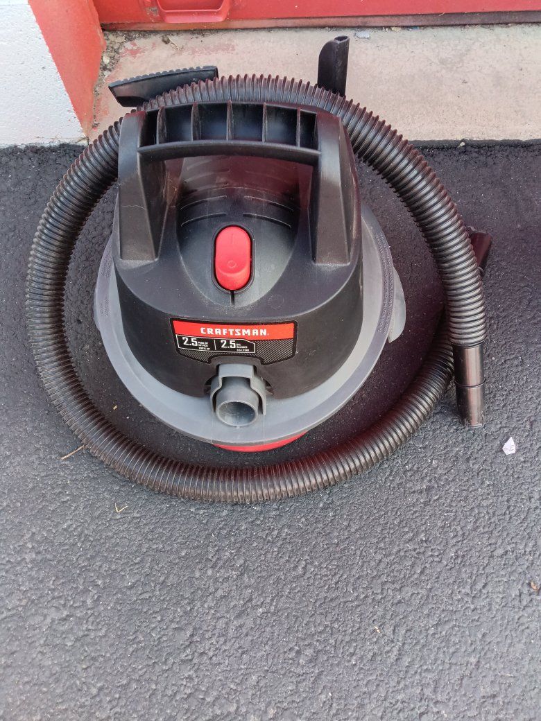 Small and convenient easy to store 2.5 gallon 2.5 horsepower shop vacuum and it runs like a champ has both attachments and hose that it came with. Extremely minimal use still has the original filter that was on it when it was purchased small and easy to store. works as good as the day it was purchased. These Sell for $45 + tax New. Get this for half price! $25