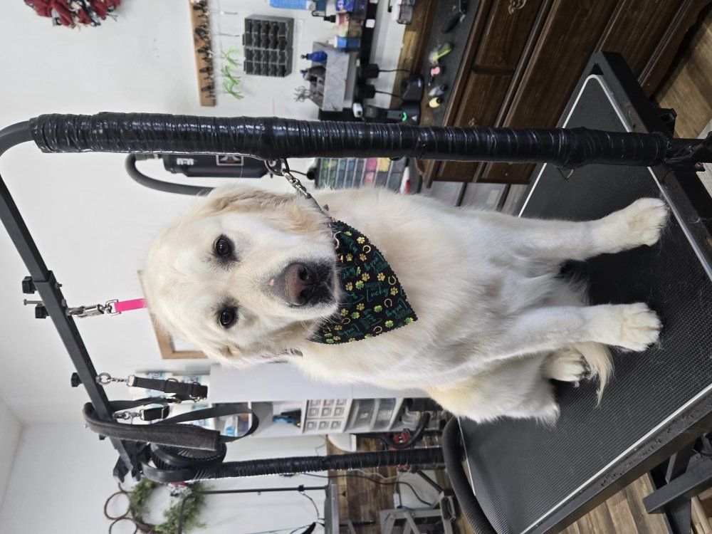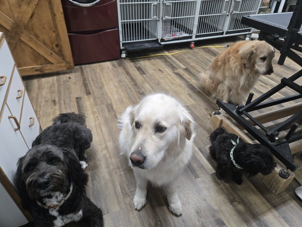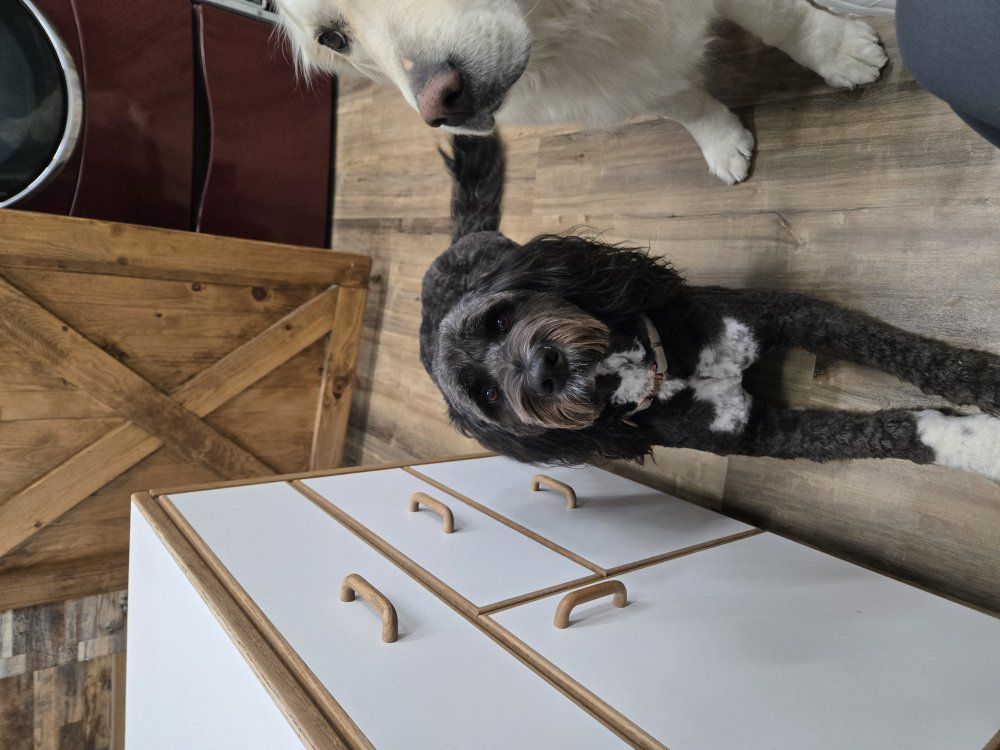 St. Bernadoodle (Saint Bernard x standard Poodle) she is 3 years old, spayed, potty (with access to a dog door) and crate trained. she is very timid of new people but has never shown aggression with it. she as well is due for her vaccinations. She is dominant when comes to getting attention with other dogs she wants it all (lol) $300 cash only and pick up only