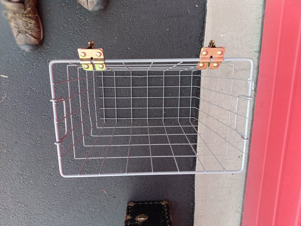 It's basket is designed for storing tools and supplies in your garage or Barn also is sold as XL bicycle basket it is a sturdy quality made not cheap it.have some brackets on it it's in like new condition dimensions are width 20"X18" tall the top opening is 12" in wide in the bottom is 10" $25 obo!