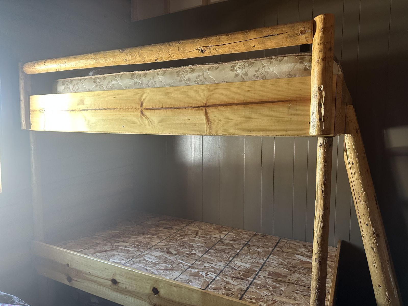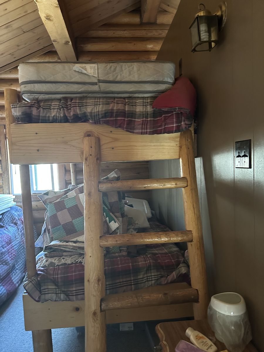 Two sets of cabin log bunk beds. Needs to be attached to wall. Well used but sturdy. Does not come with twin mattresses. $300 or best offer for all. Text Nick at 801-389-2426. Cash only.