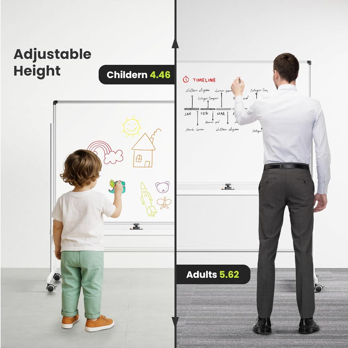 ApplePayVUSIGN 36" x 48" Mobile White Board on Wheels, Double Side Dry Erase Board with Stand, Large Aluminum Frame Standing Rolling Whiteborad for Office, Home,School