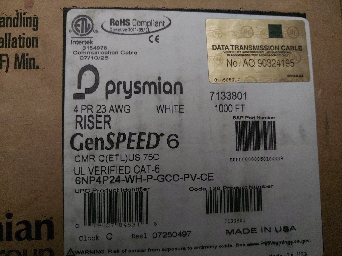 ZellePrysmian 7133801 GenSPEED 6 Cat6 cable (23AWG, CMR, White, 1000' Pull-Pac II)