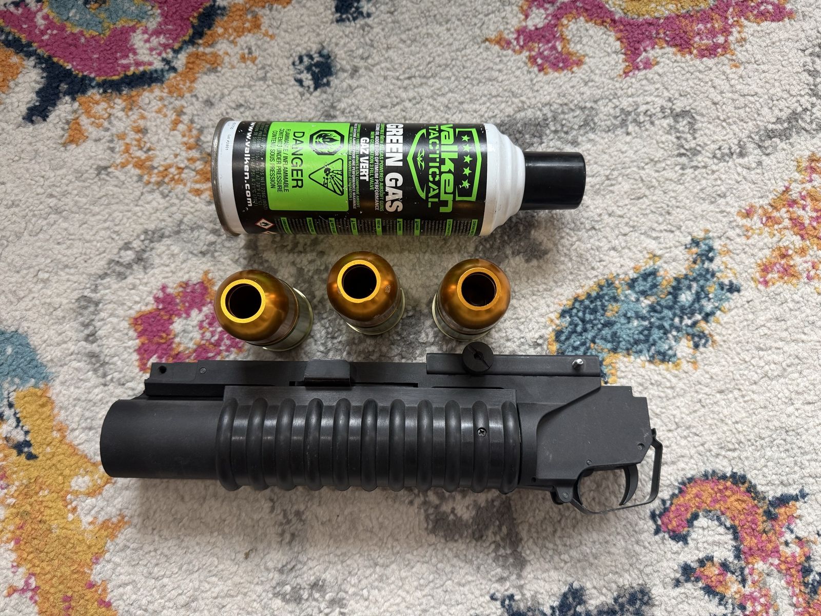 VSR-10 with upgraded internals $125 Shotgun $50 M4 combat machine $150 40mm grenade launcher with 3 grenades $100