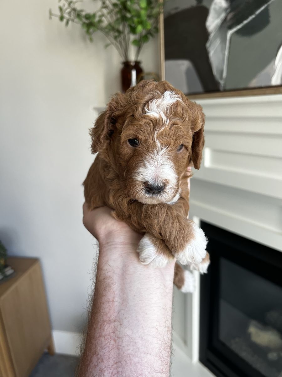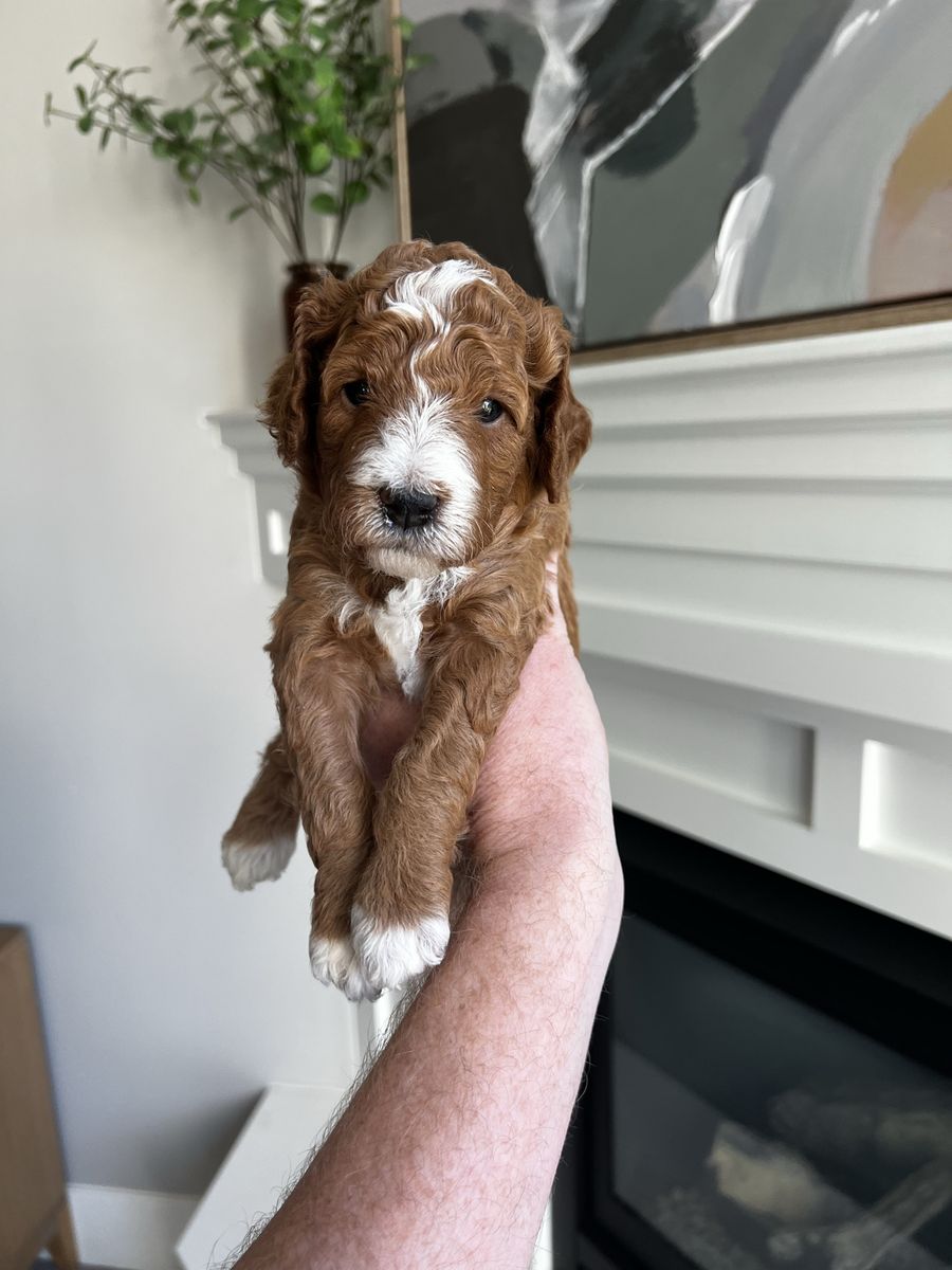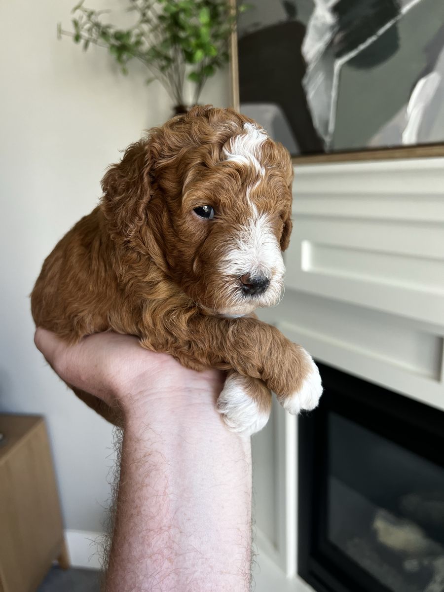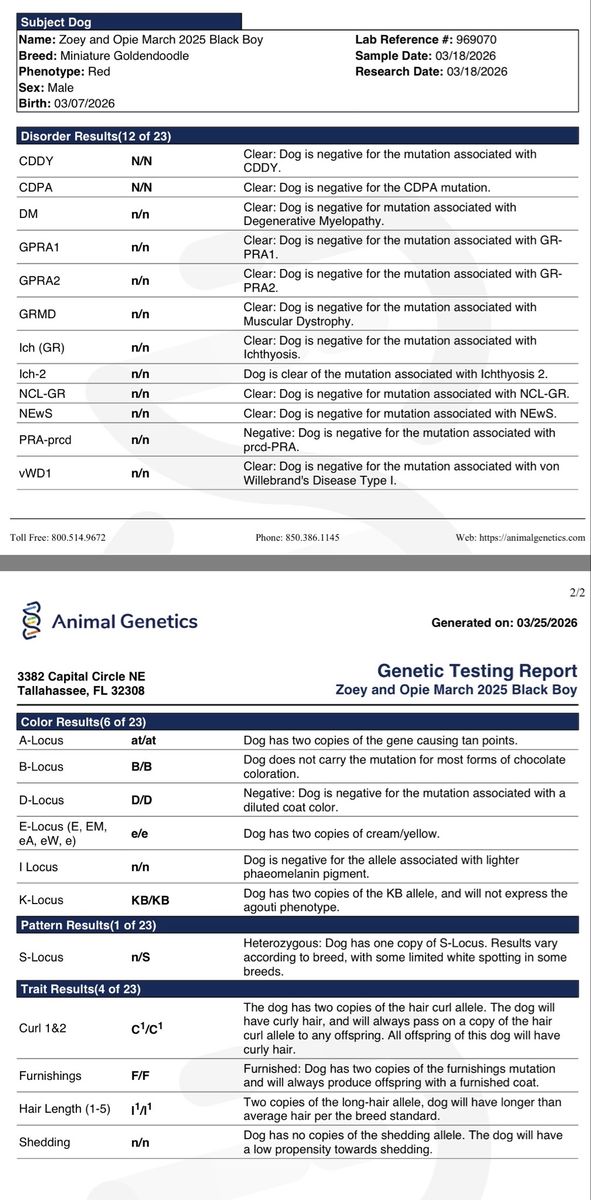 VenmoWe have ran a complete genetic profile on Smokey our Mini Goldendoodle puppy. He will make a great stud or family pet. Tuxedo markings. All clear for CDDY, CDPA, DM, Ich, vWD. Fully furnished, double curl, no shed gene, one white spotting, both copies of long hair length. Both parents are around 20 lbs and he is absolutely adorable. 4k as a family pet 4,800 for full breeding rights. We also have females that would be a good addition to a breeding program. Message for more details