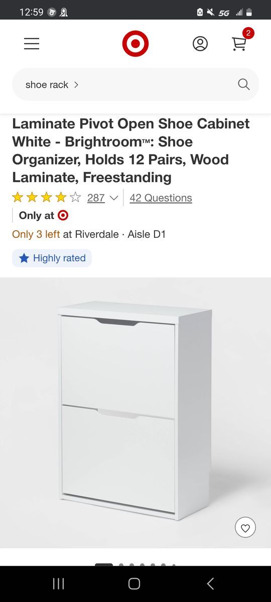 ZelleWhite laminate shoe cabinet with two pull-out compartments.