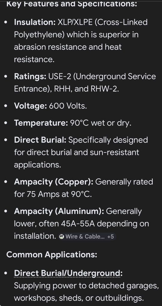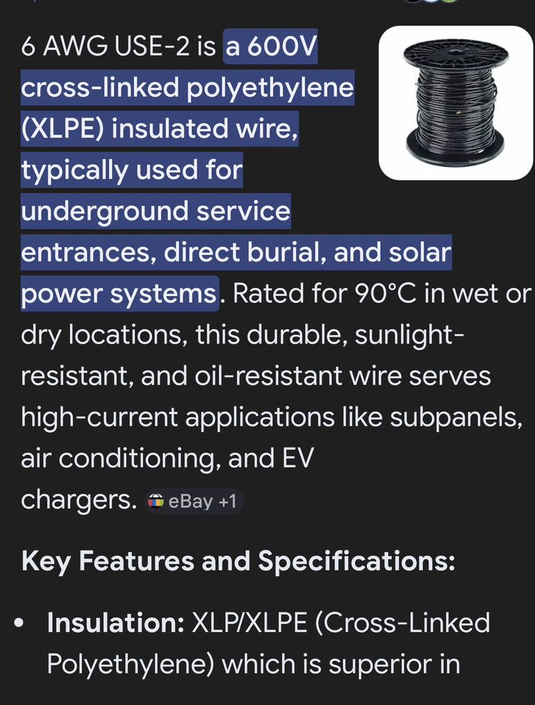 PayPal110 feet of 6 awg use-2 direct burial wire See NEC for ampacity ratings.