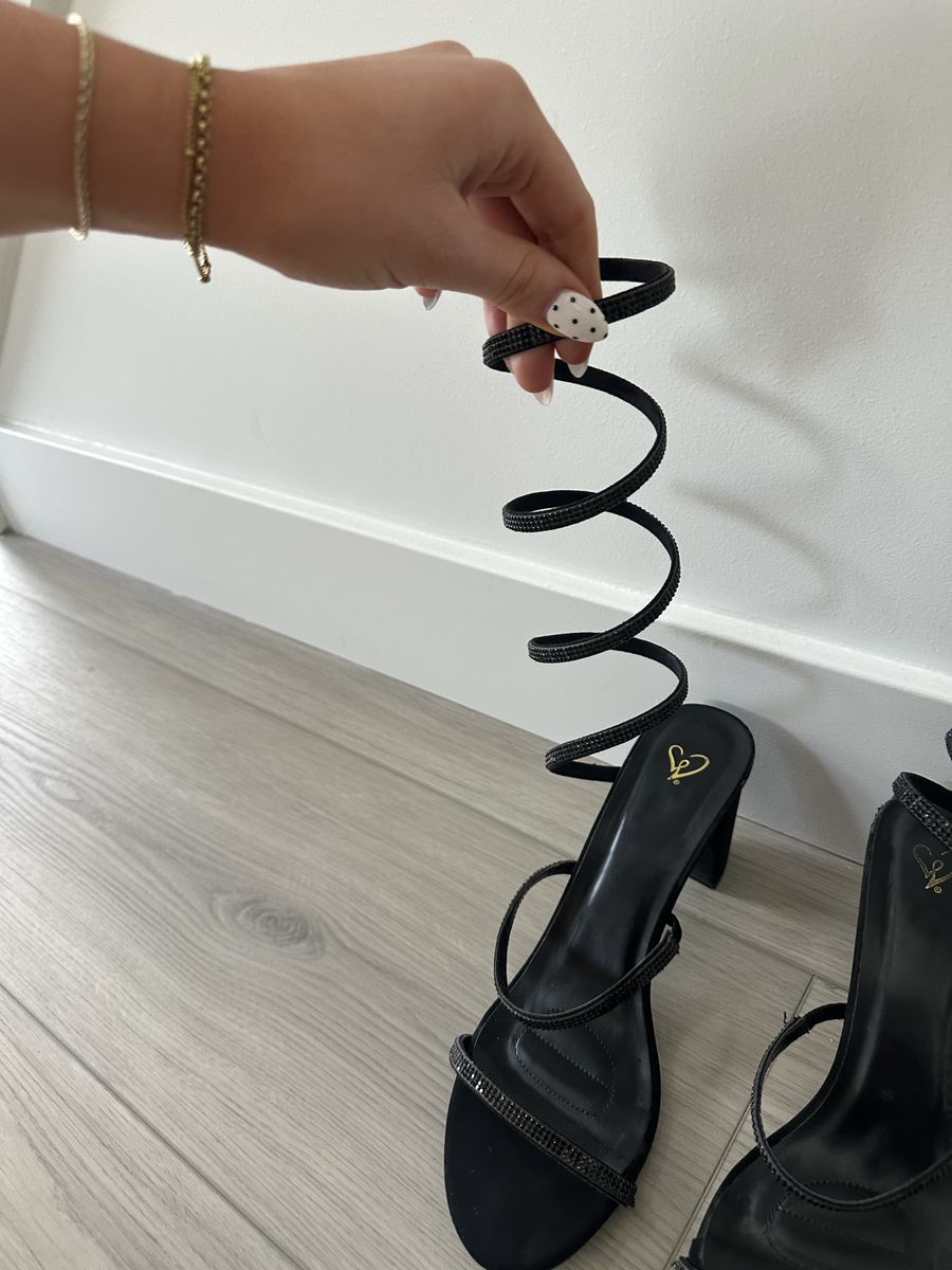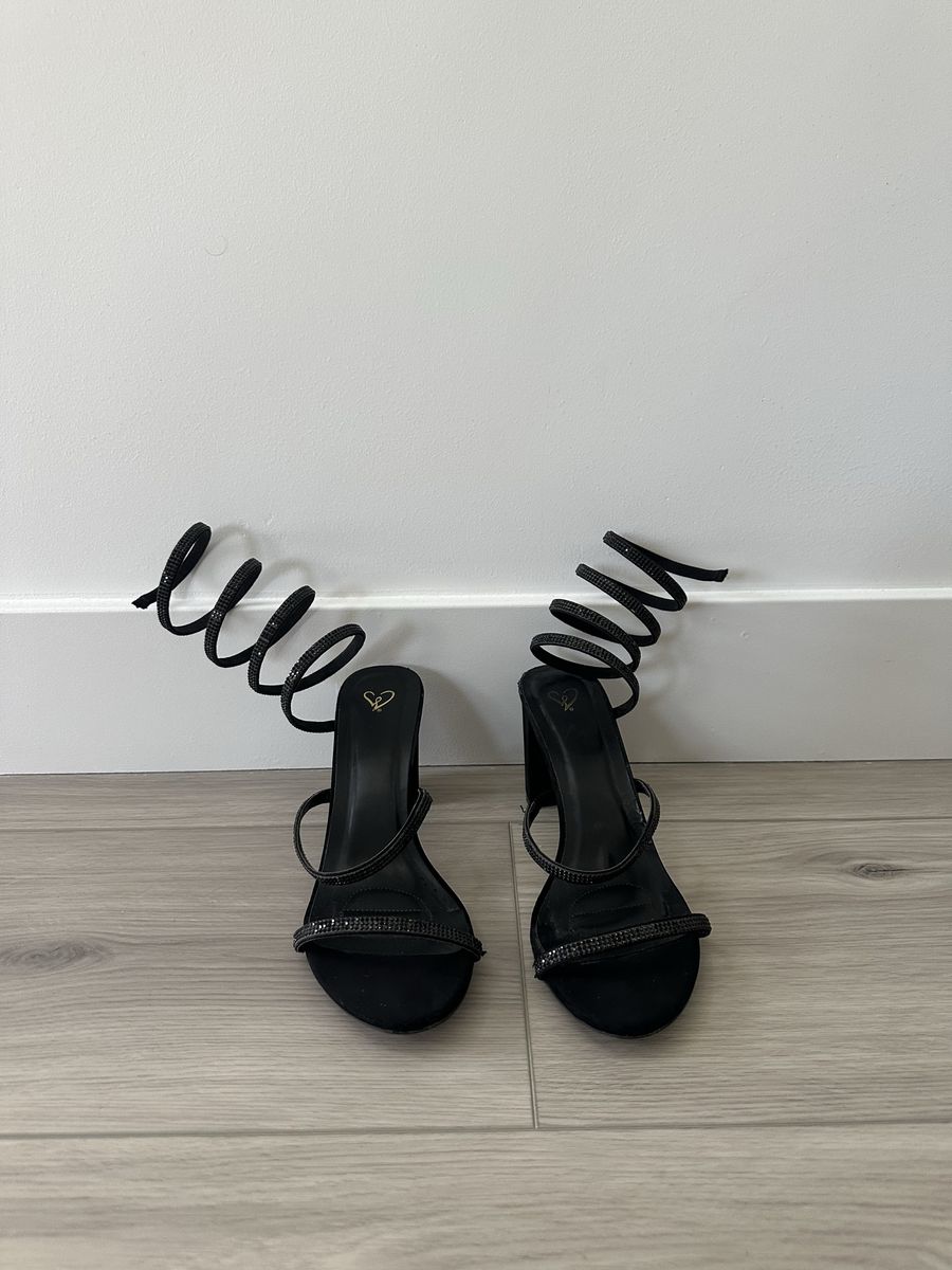 VenmoElegant and just plain cool. Studded with black stones for just the right sparkle 3 in block heel for comfort and stability Excellent condition I'm normally a 9 or 9 1/2 and these were perfect