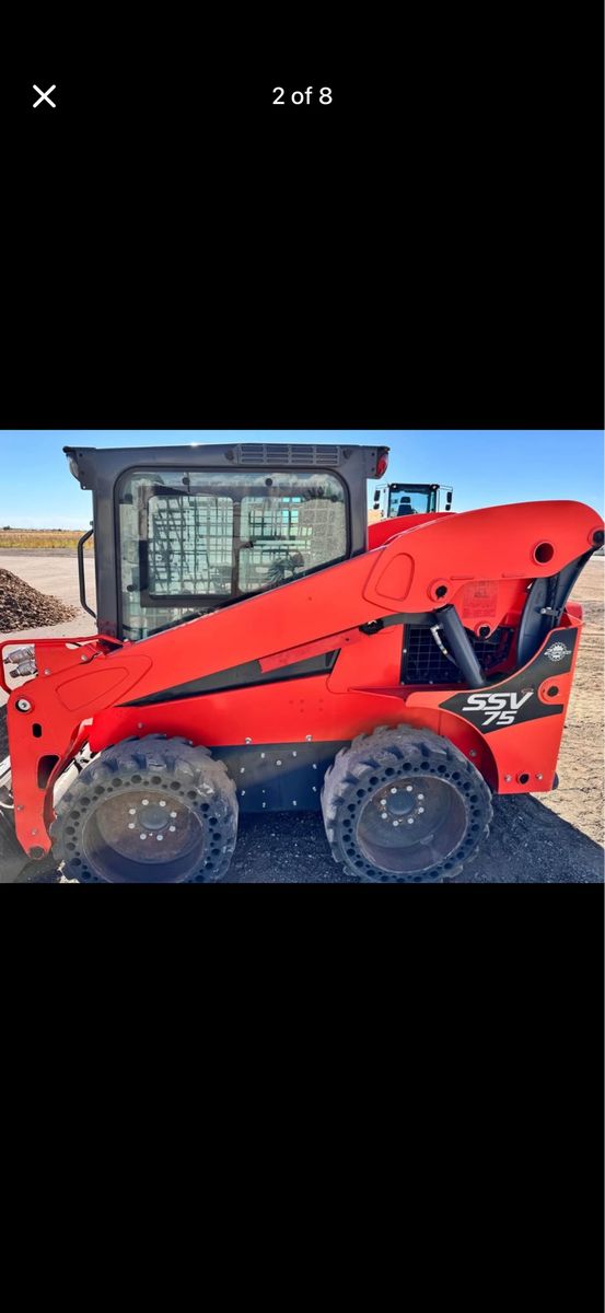 Kabota SSV 75 skid steer, a little over 300 hours, air-conditioning, heater, solid tires, 13 pin connector, Hydraulic quick connect, fully enclosed cab runs straight. Everything works fine call Cody 801-603-2517.