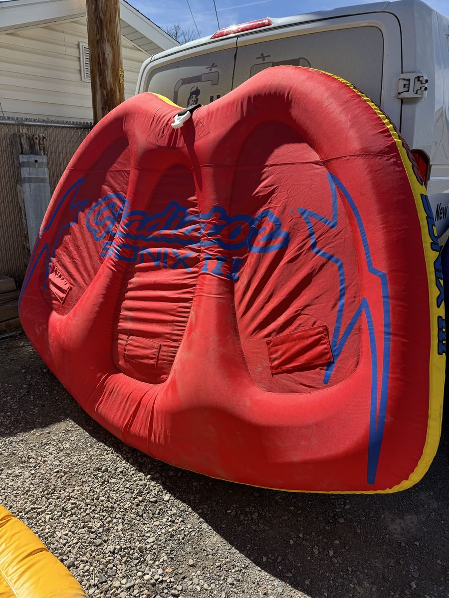 Gladiator Sonic 3, 3-person cockpit-style towable tube. $300 new, used very little & holds air Cash only, personal pickup