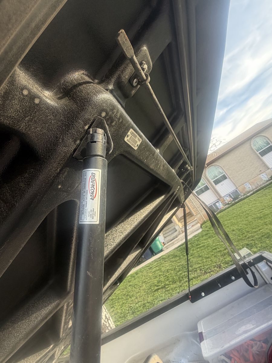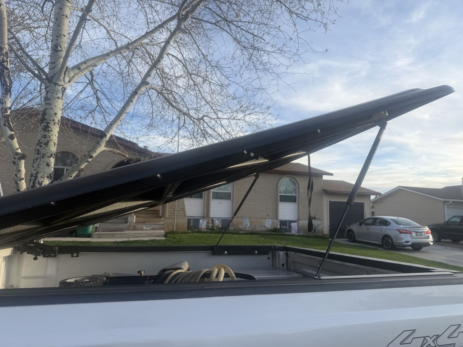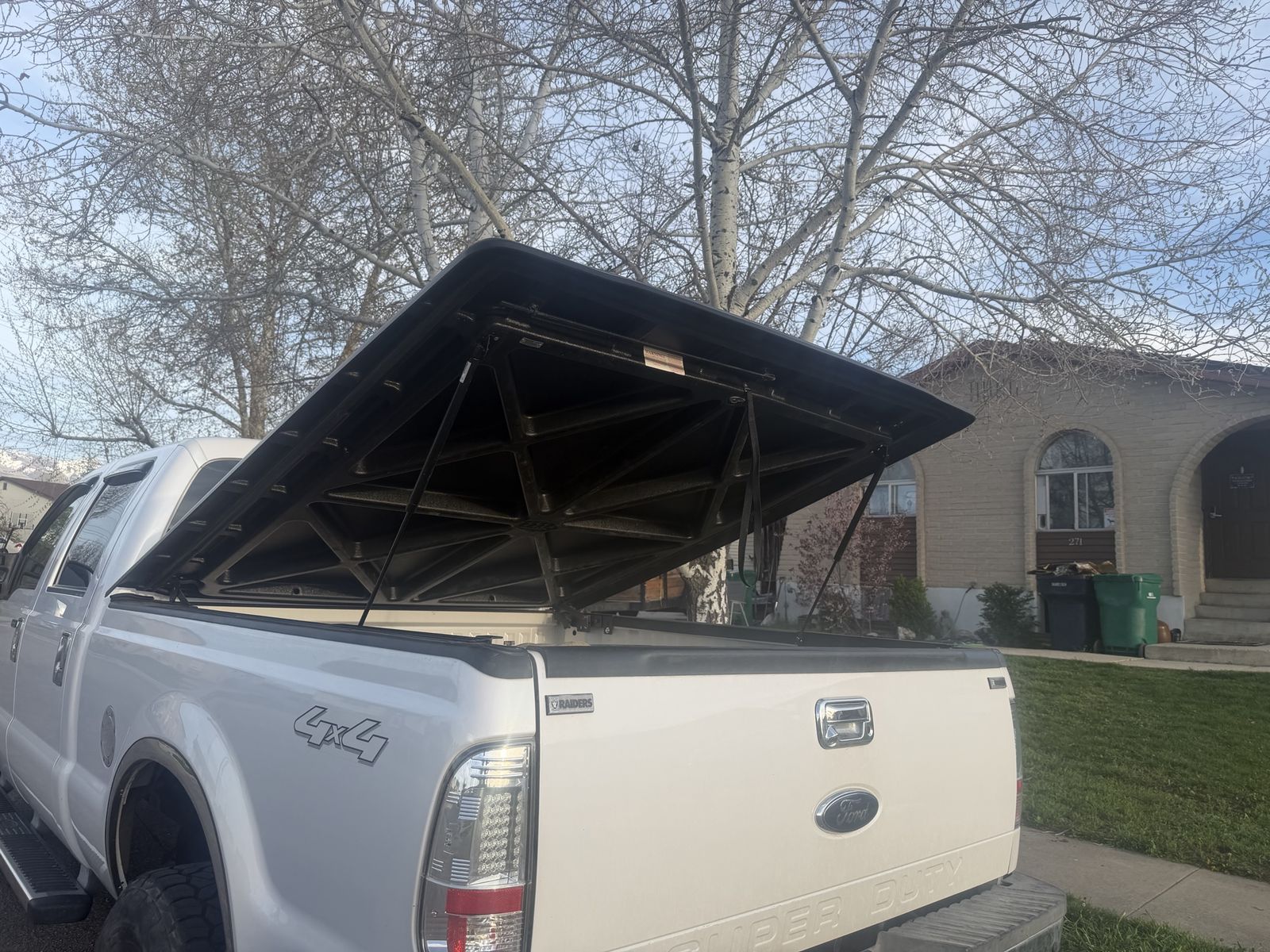 PayPalUnderCover hard tonneau cover with gas strut lift assist. Opens easily and holds itself up for full bed access. Has been used for camping in bed. Great condition, no leaks, like new. All mounting hardware included. Works with Ford F-250/F-350 long bed (8 ft). These retail up to $1500 new. Works perfect.”